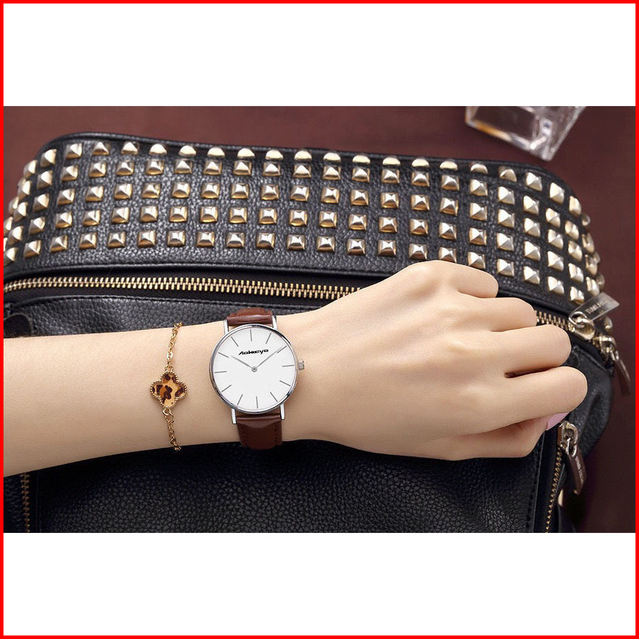 Aokeyo J89 Jam Tangan Wanita Kulit Original Anti Air Keren Sangat Tipis Quartz Sports Analog Jam Tangan Cewekfree Box Ka