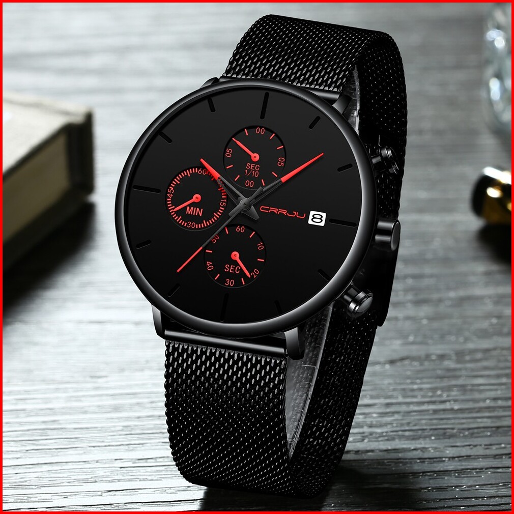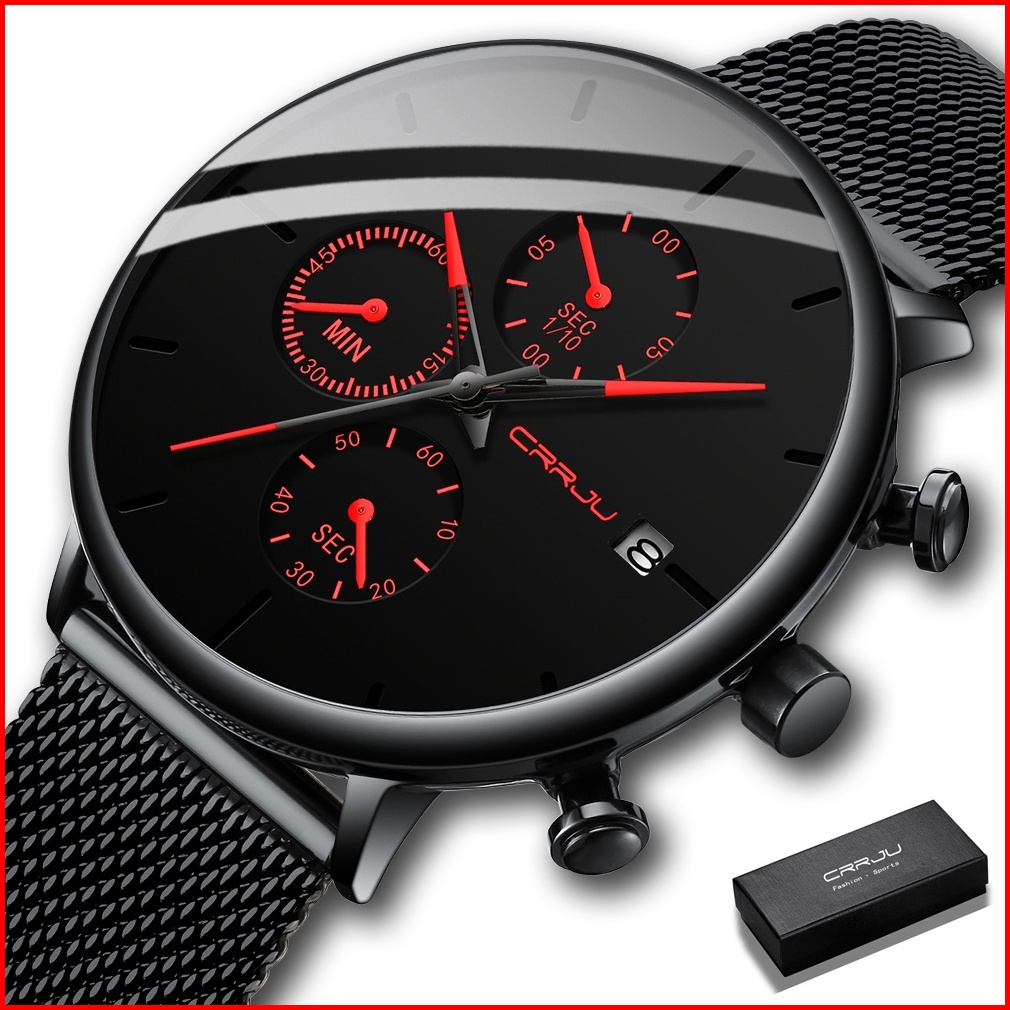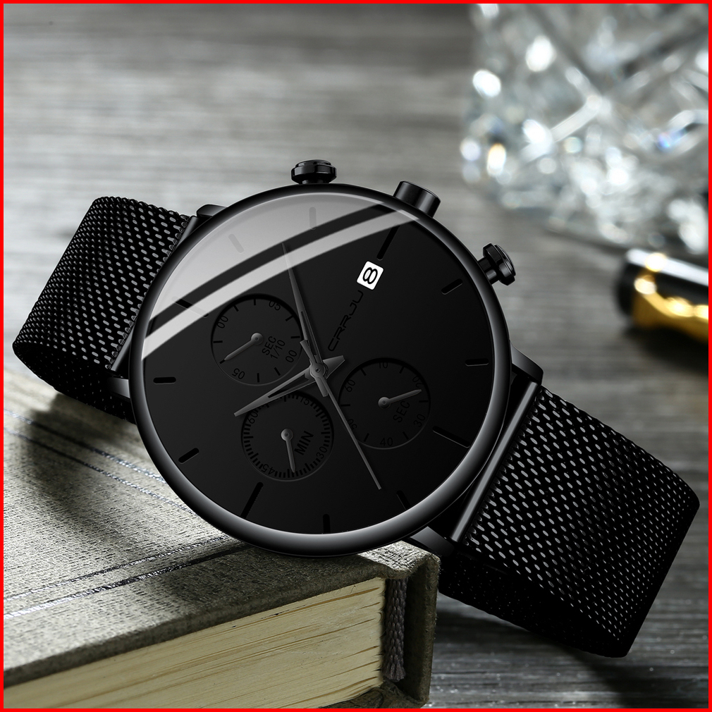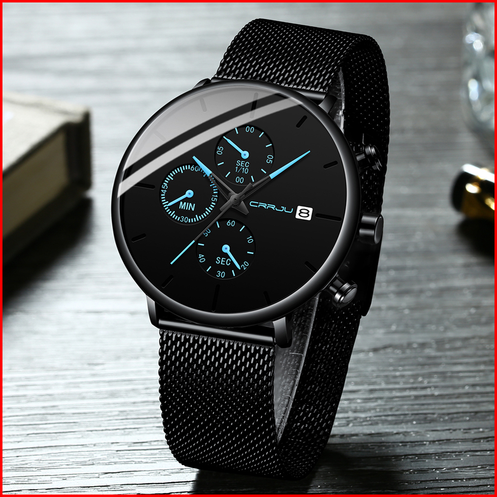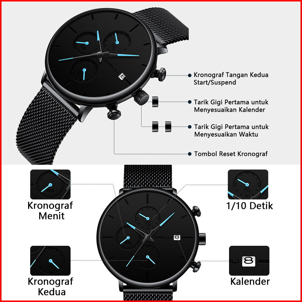 Crrju Jam Tangan Pria Casual Quartz Analog Casing Stainless Steel Chronograph Kuarsa Kalender Tahan Air Jam Tangan Cowok