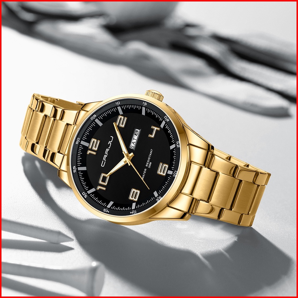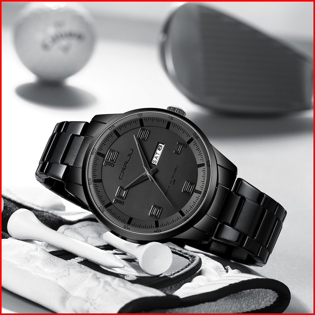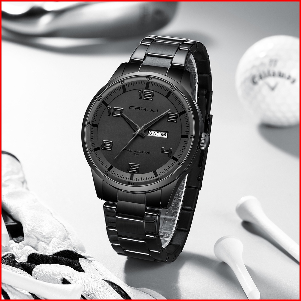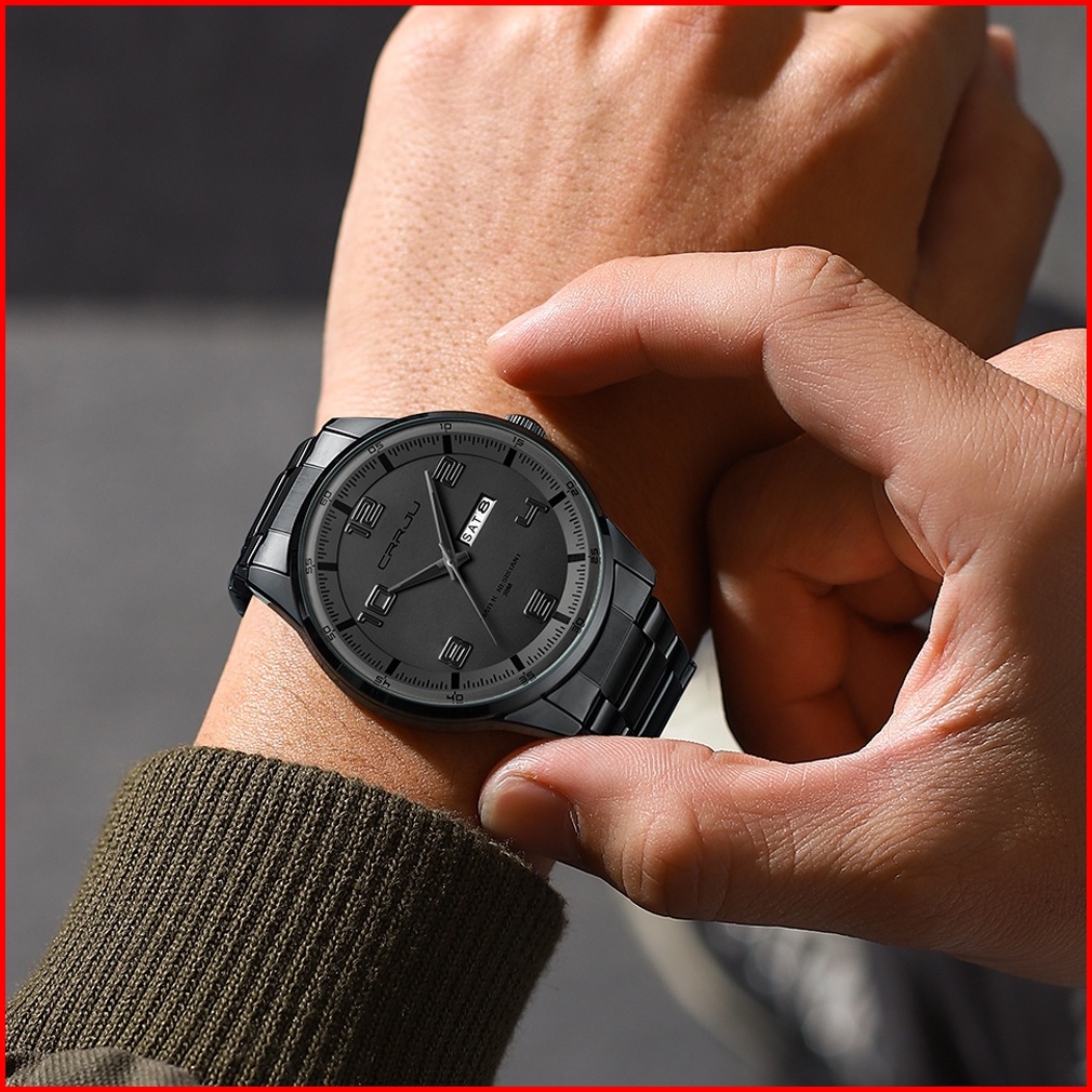 Crrju Jam Tangan Pria Original Anti Air Tahan Sport Analog Multi-fungsi Lampu Siang Hari Stainless Steel Watch Men