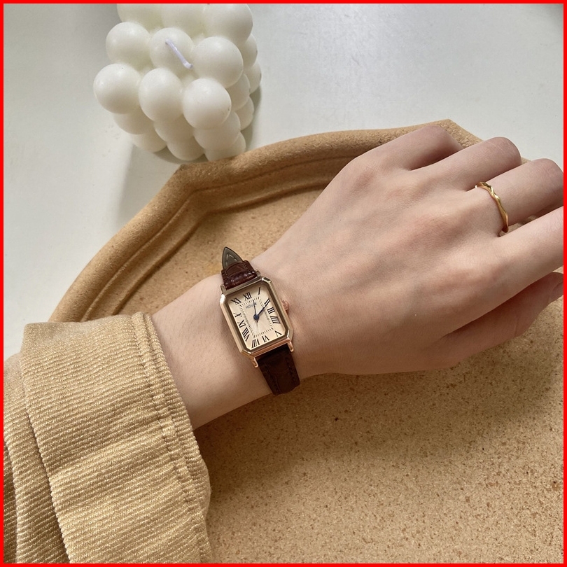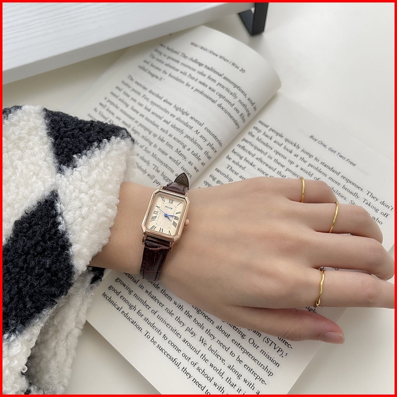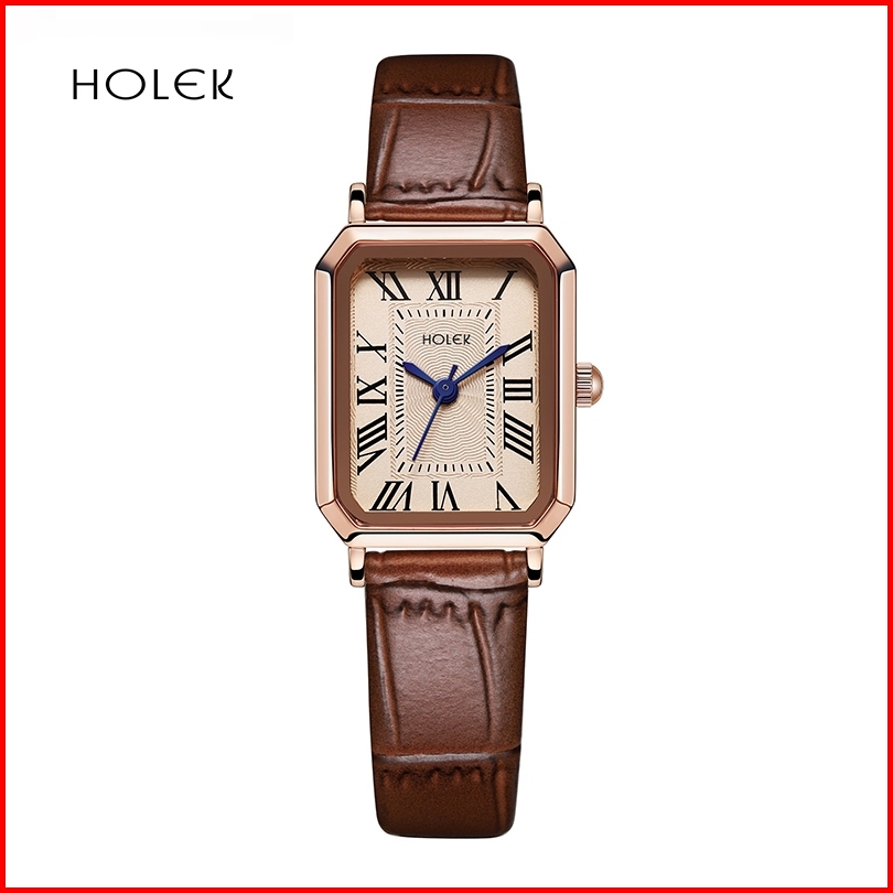 Holek 82012 Jam Tangan Wanita Anti Air Korea Retro Kasual Tali Kulit Jam Tangan Cewek Kotak Gratis