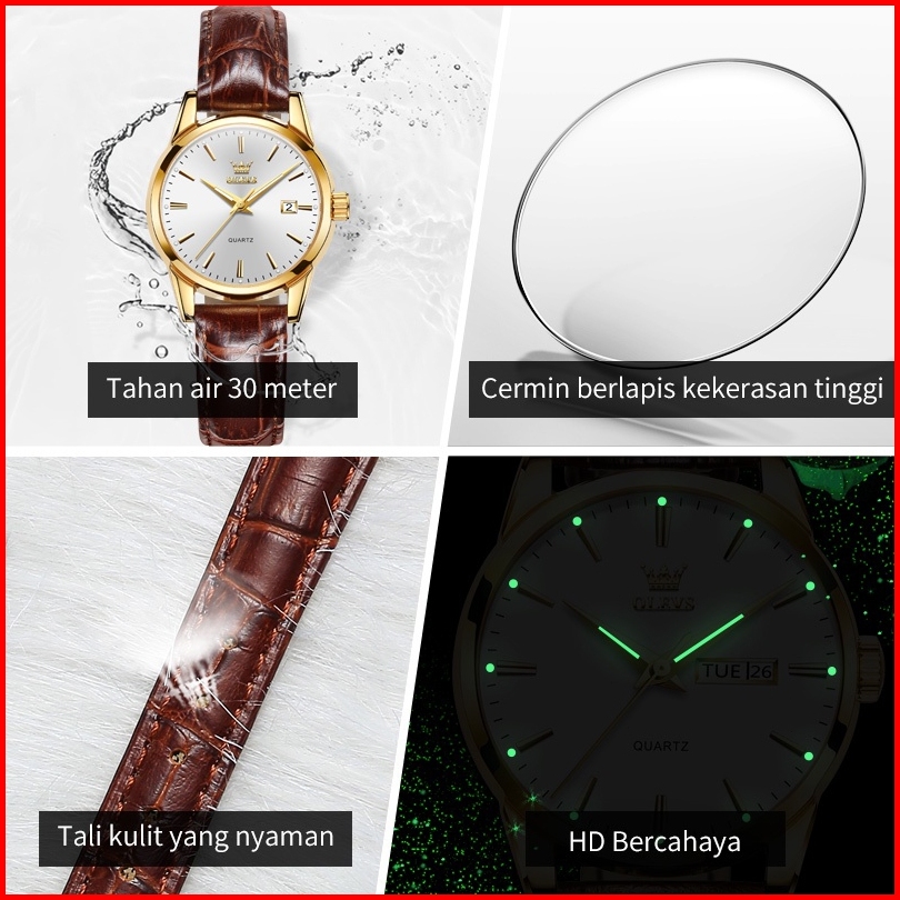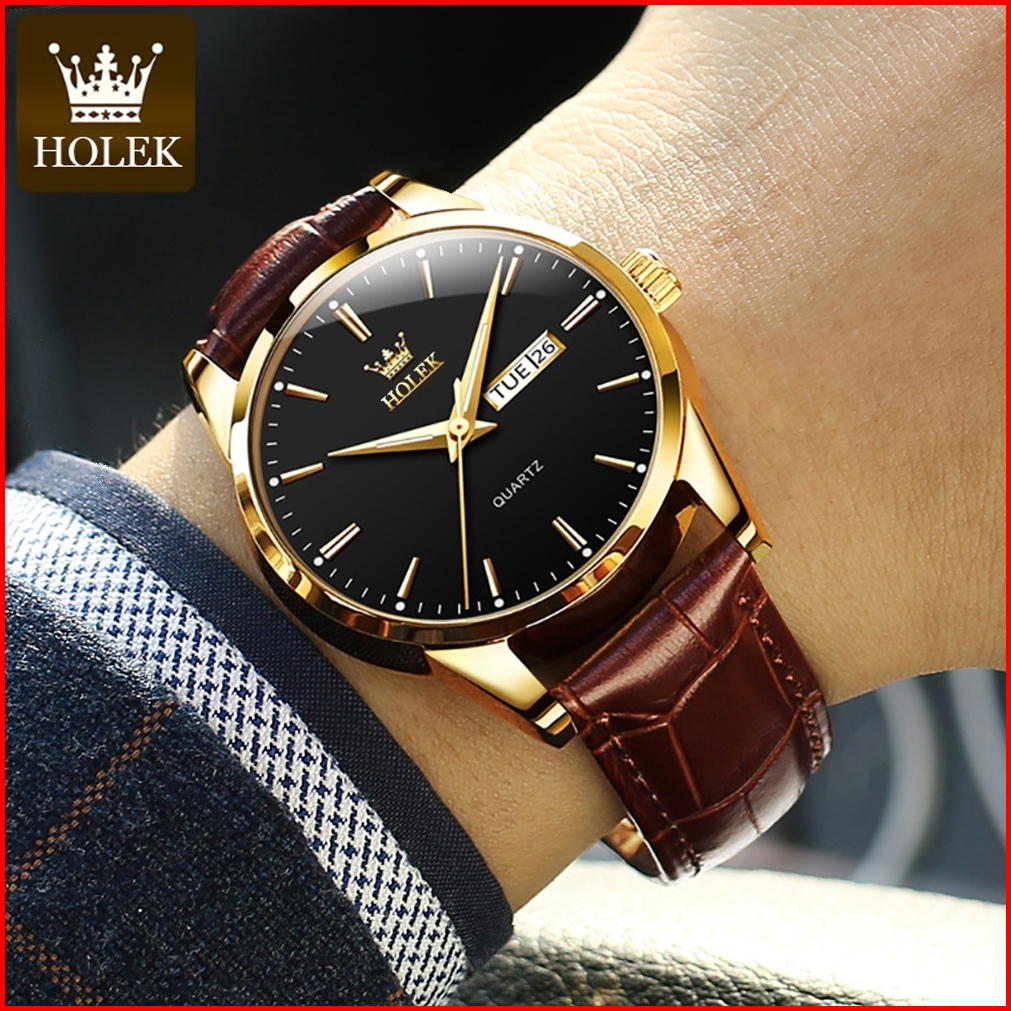 Holek H001 Jam Tangan Couple Pasangan Anti Air Luxury Fashion Tali Kulit Dewasa Watch Kotak Gratis