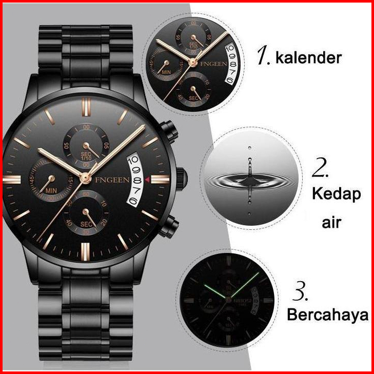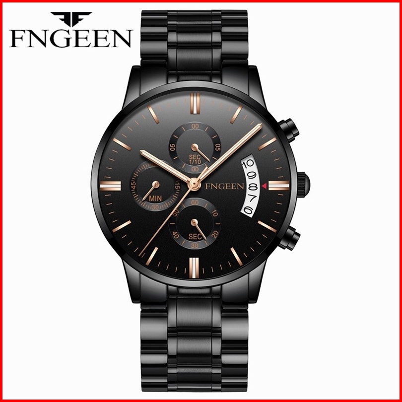 Fngeen 5055 Jam Tangan Pria Anti Air Fashion Olahraga Stainless Steel Quartz Watch Kotak Gratis