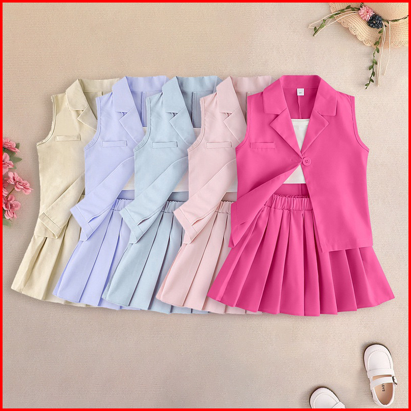 Littleflamingo Inc Setelan Rompi Vest Anak Crop Top Rok Anak Perempuan Barbie Shireen Kak Hamidah