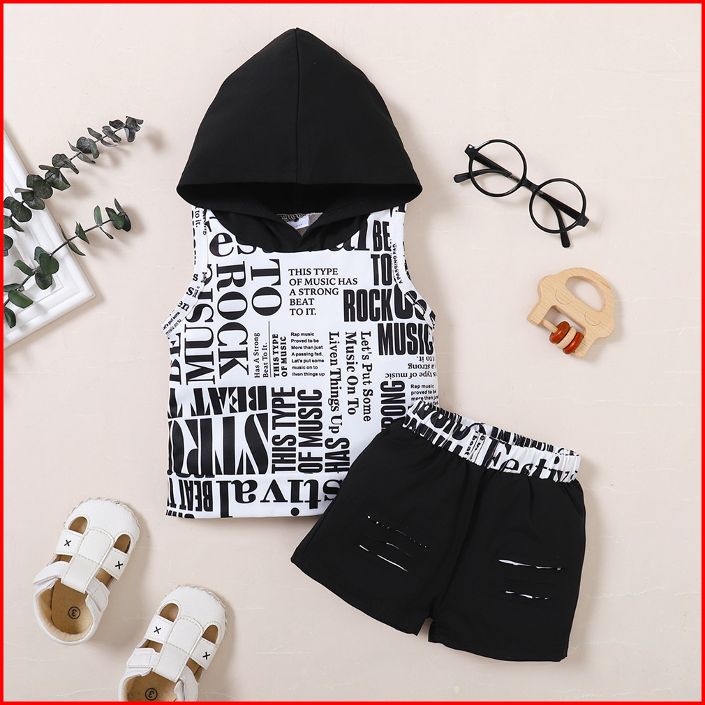 0-3years Newborn Baby Boy 2pcs Clothes Set Sleeveless Hoodie Top Short Summer Daily Casual Outfit