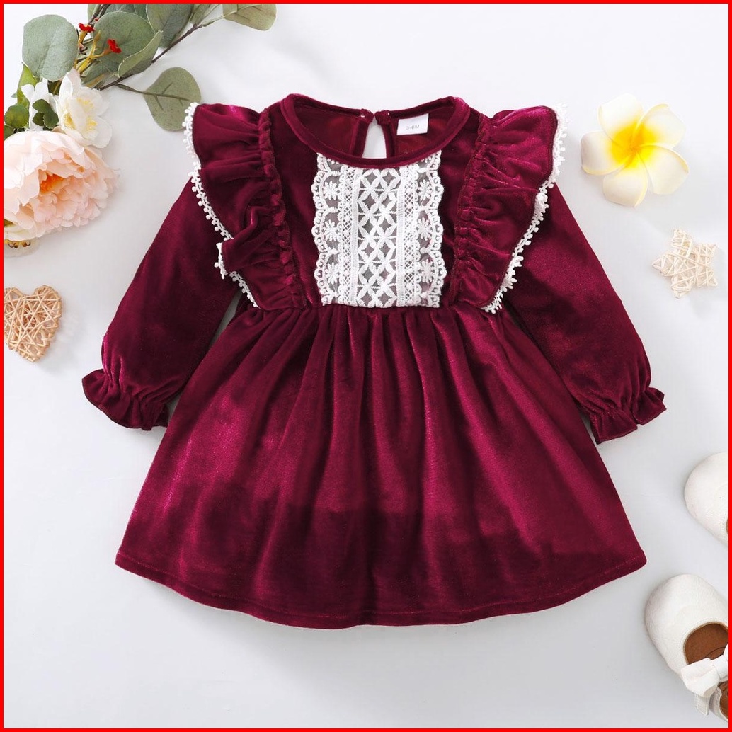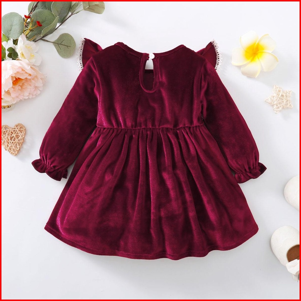 Baby Sister Girl Dress Baju Bayi Perempuan Lengan Panjang Ruffle Terbang Lengan Desain Jahitan Renda Gaun Pesta Gaun Put
