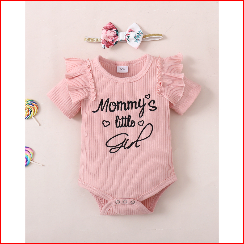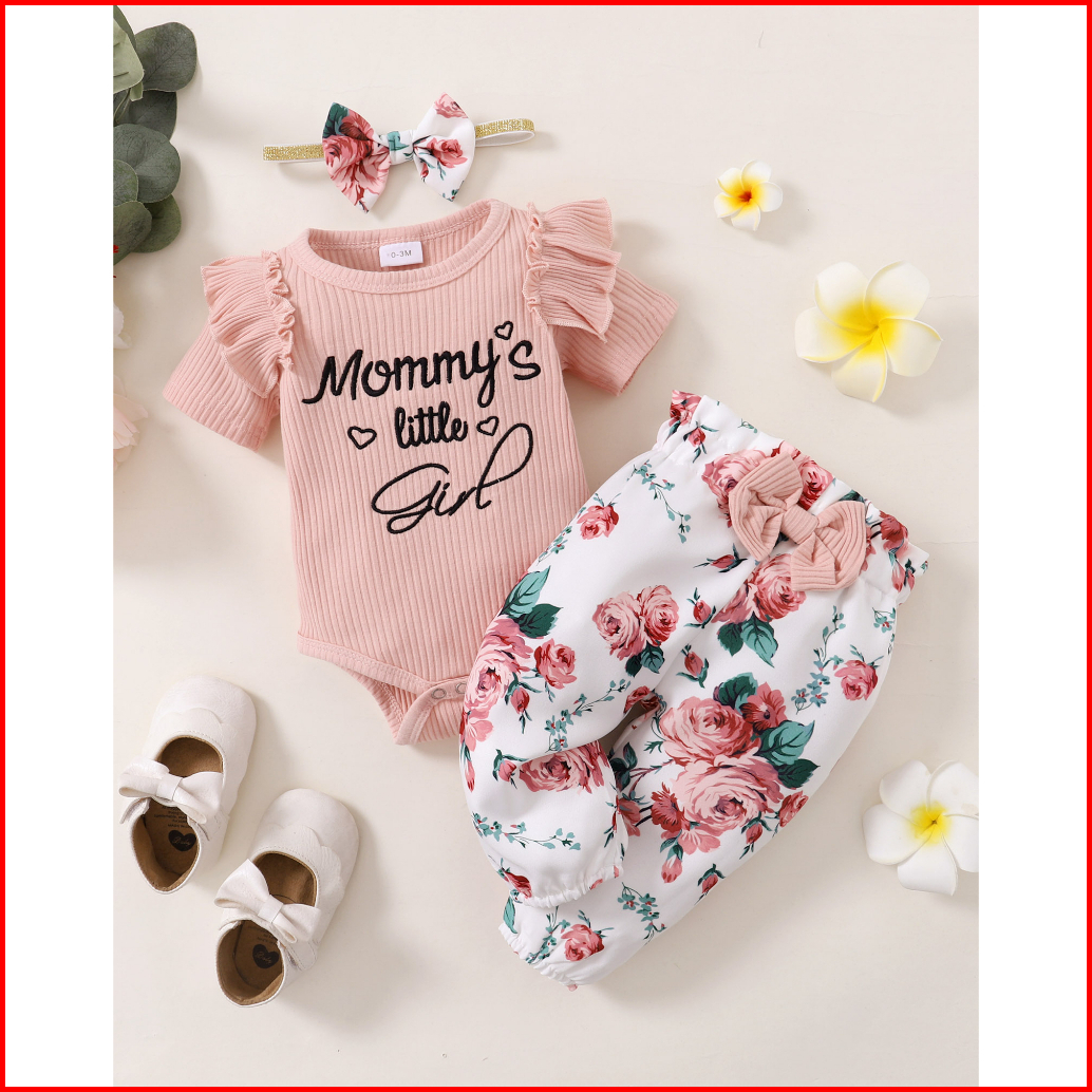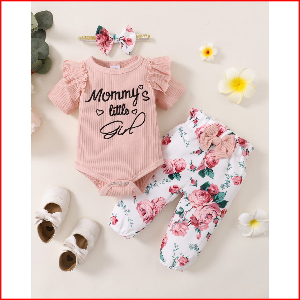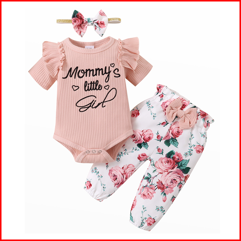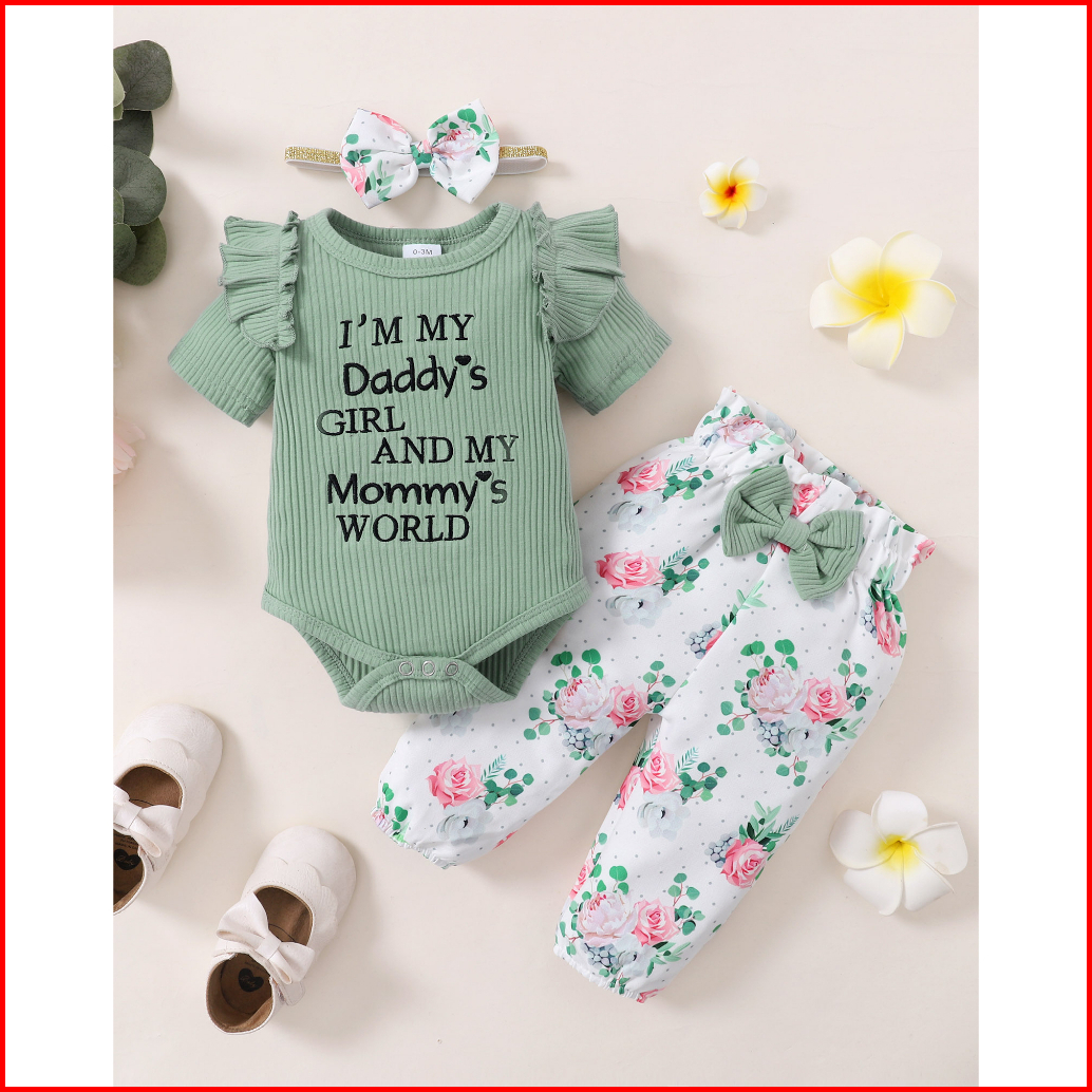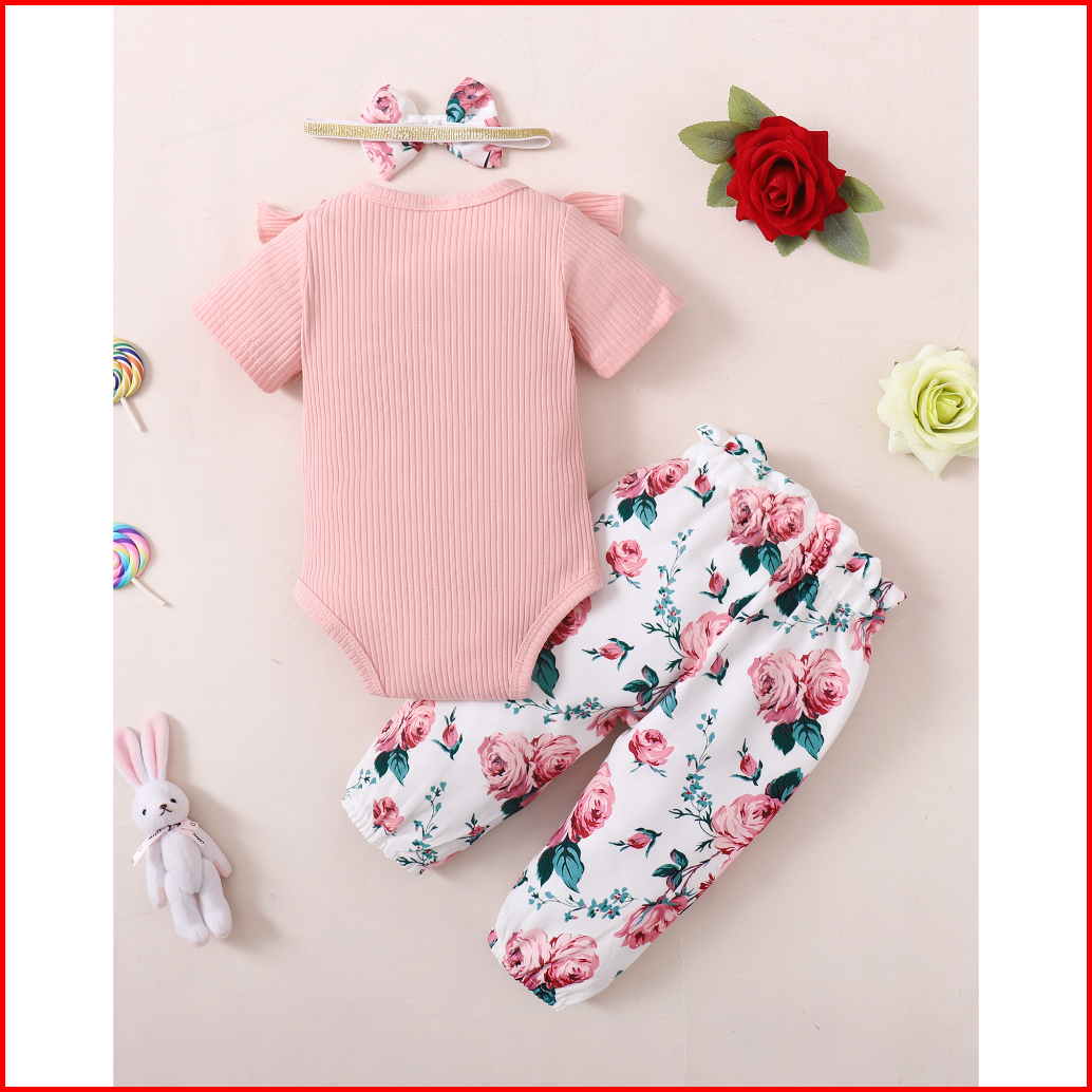0-18 Months Newborn Infant Baby Girl Clothes Short Sleeves Love Printed Romper Top Trouser With Headband 3pcs Suit Toddl