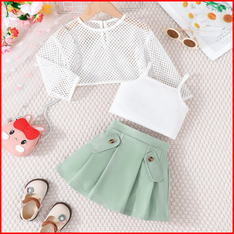 Littleflamingo Inc Setelan Baju Outer Jaring Rok Anak Perempuan Lucu Ready Stock