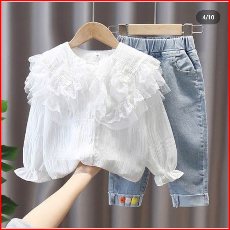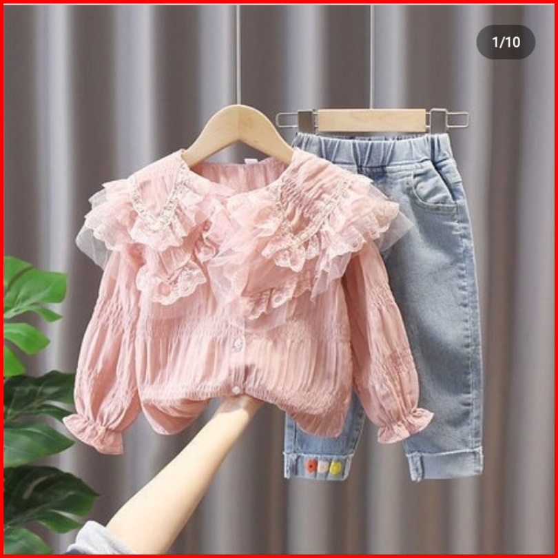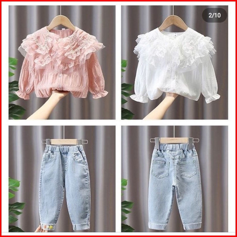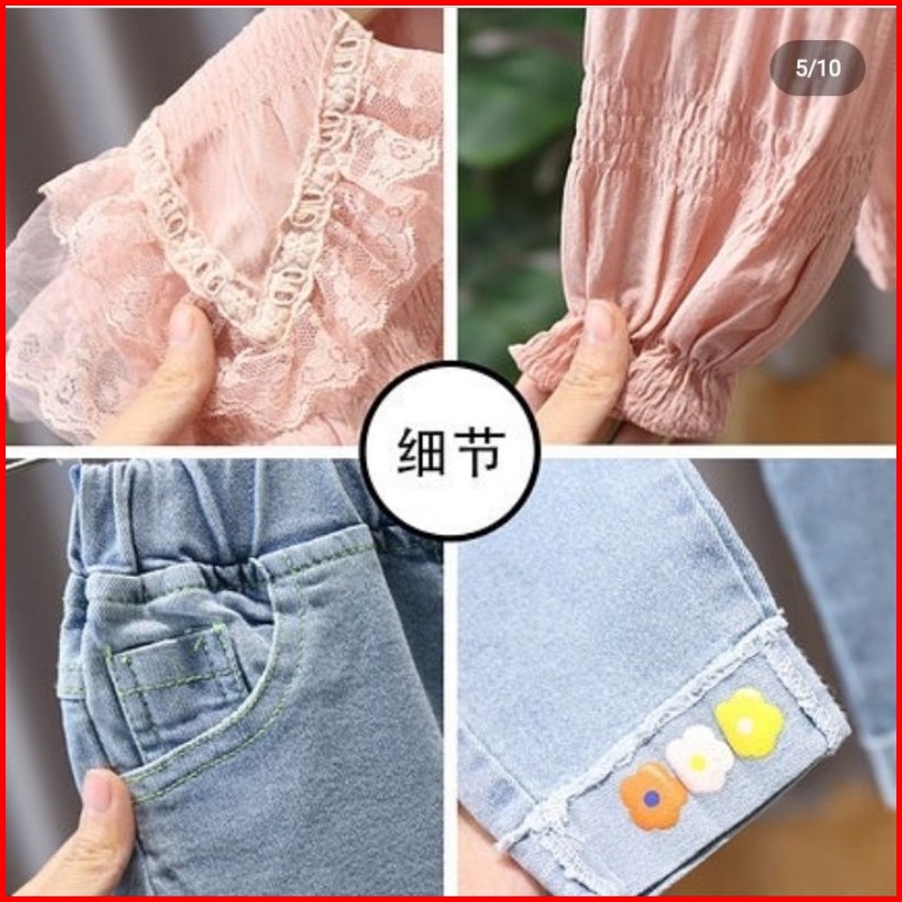 Littleflamingo Setelan Baju Celana Jeans Anak Perempuan Lucu Ready Stock