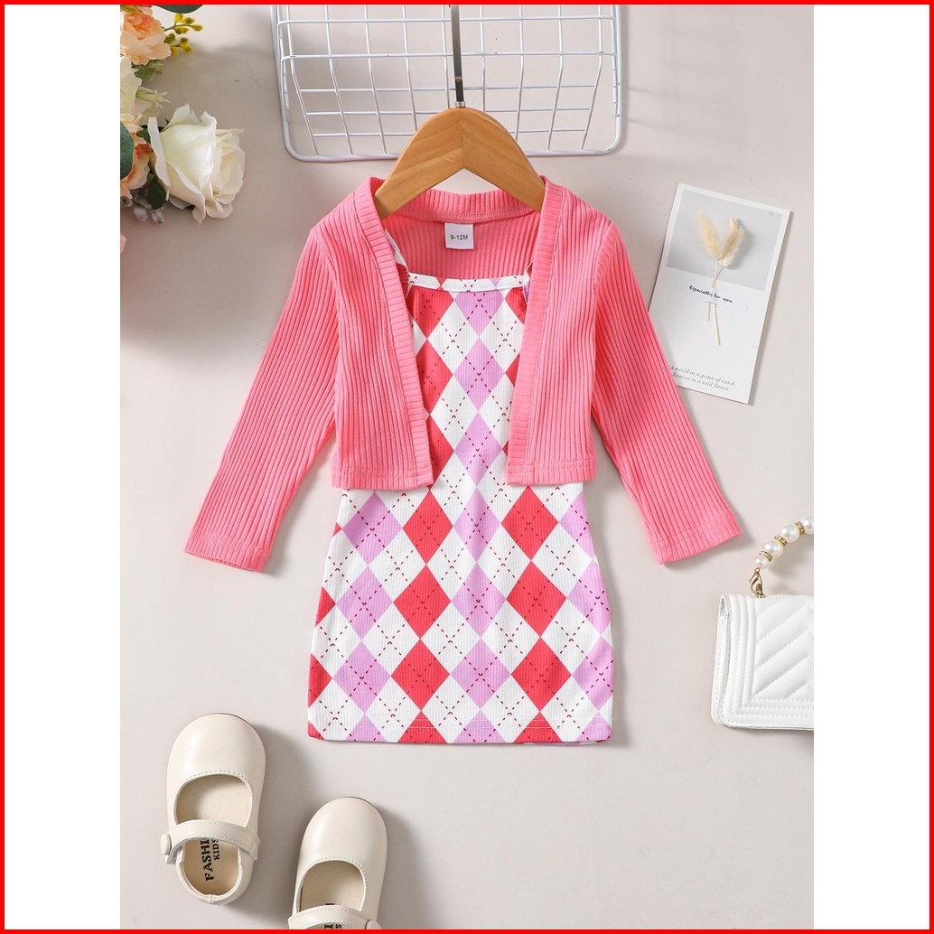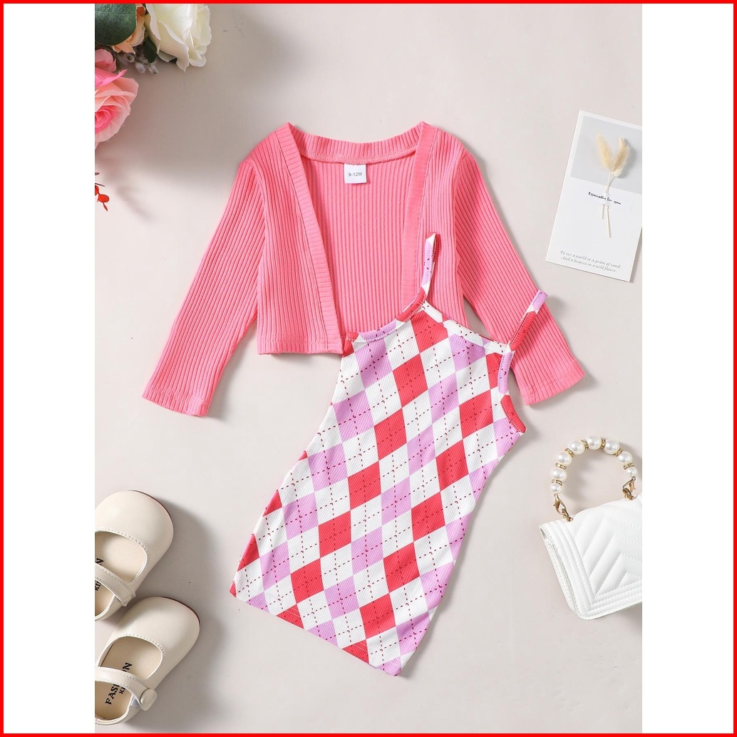 Baju Anak Perempuan 1-4y Kids Baby Barbie Fashion Girl Dress Set Baby Clothing Girls Clothing Plaid Dress Knit Coat Two-