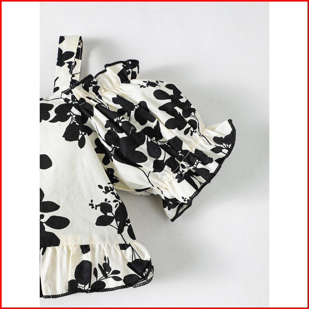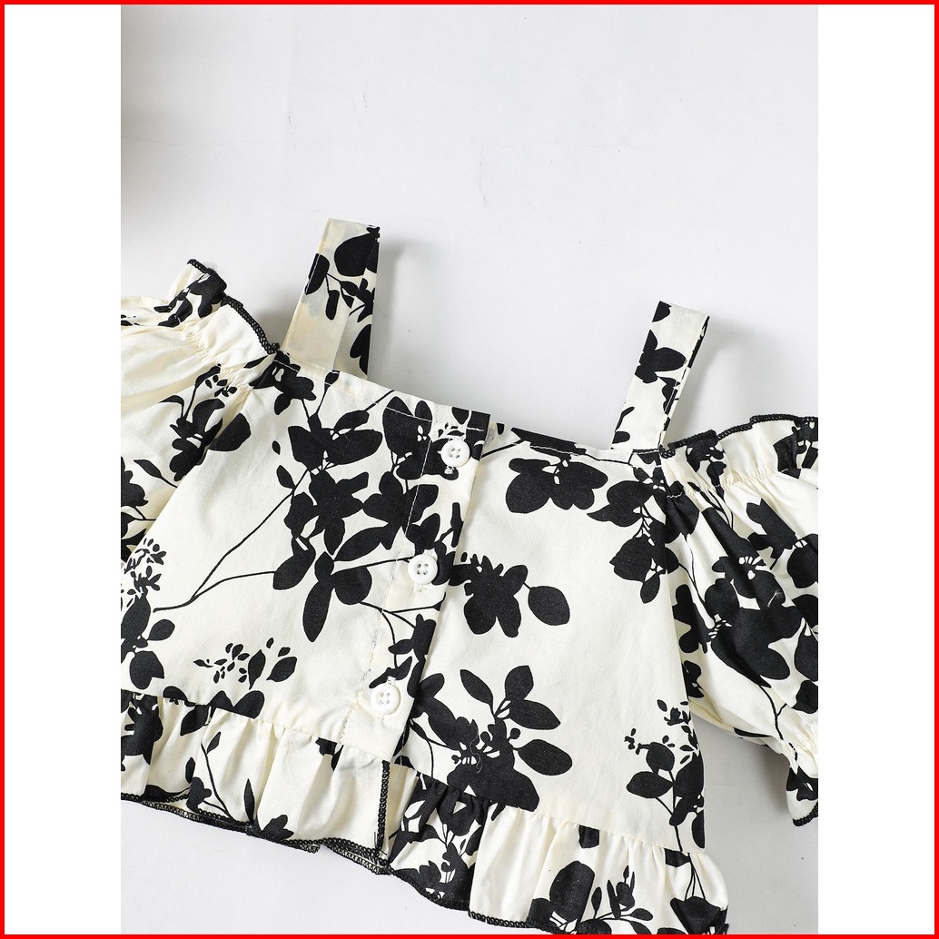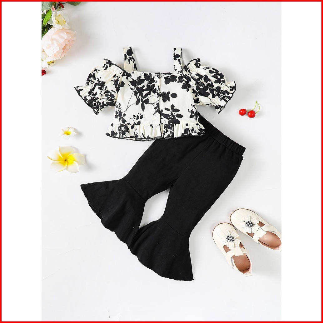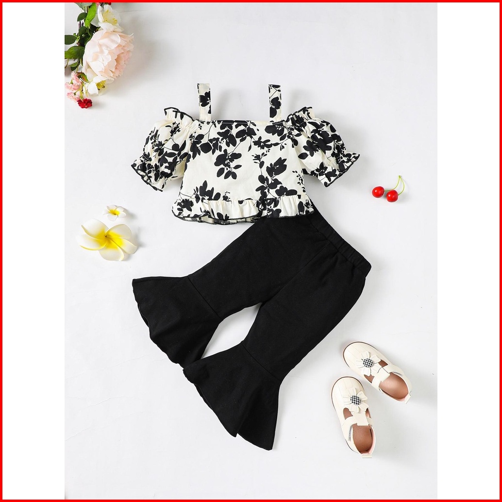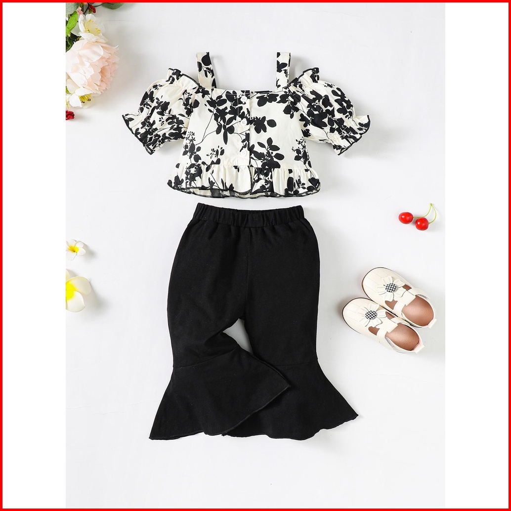 1-3y Baby Girl Clothes Set Girls Printed Kamisol Tanpa Tali Atas Celana Berkobar Hitam Dua Set