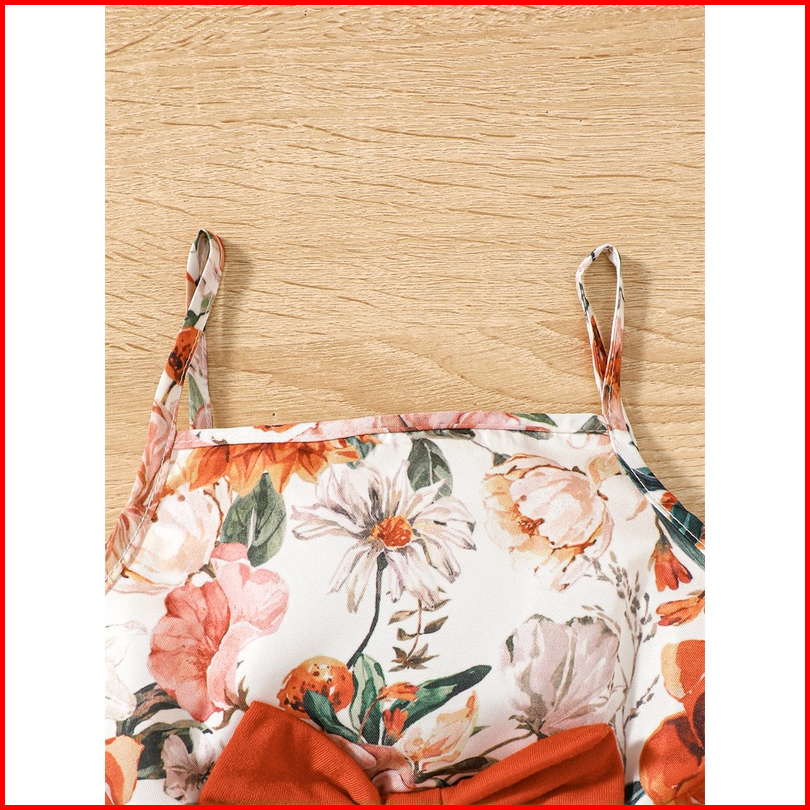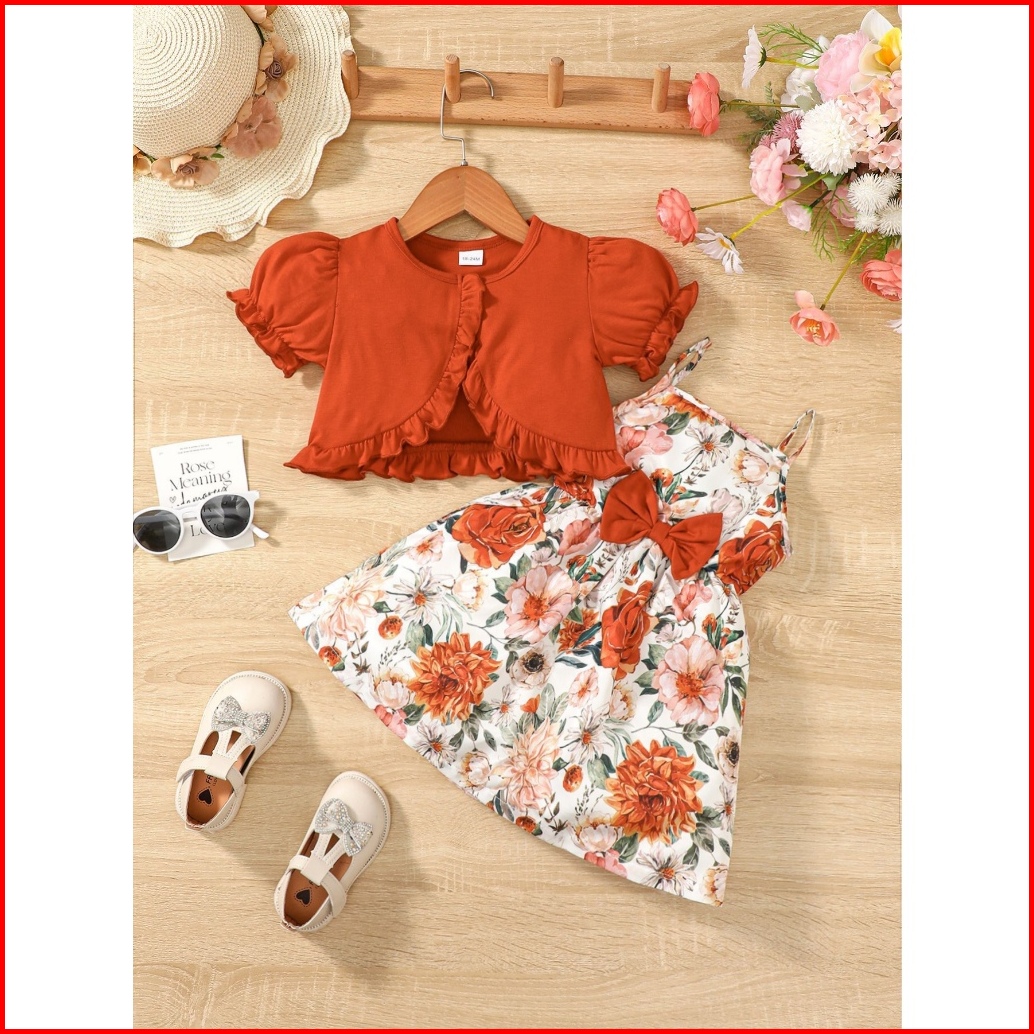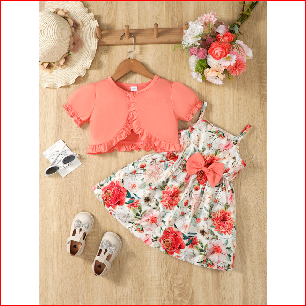 Dress For Kid Girl 1-6 Years Chlid 2pcs Clothes Set Plain Color Short Sleeve Top With Floral Sleeveless Dress Fashion Da
