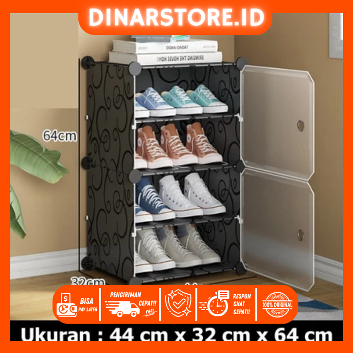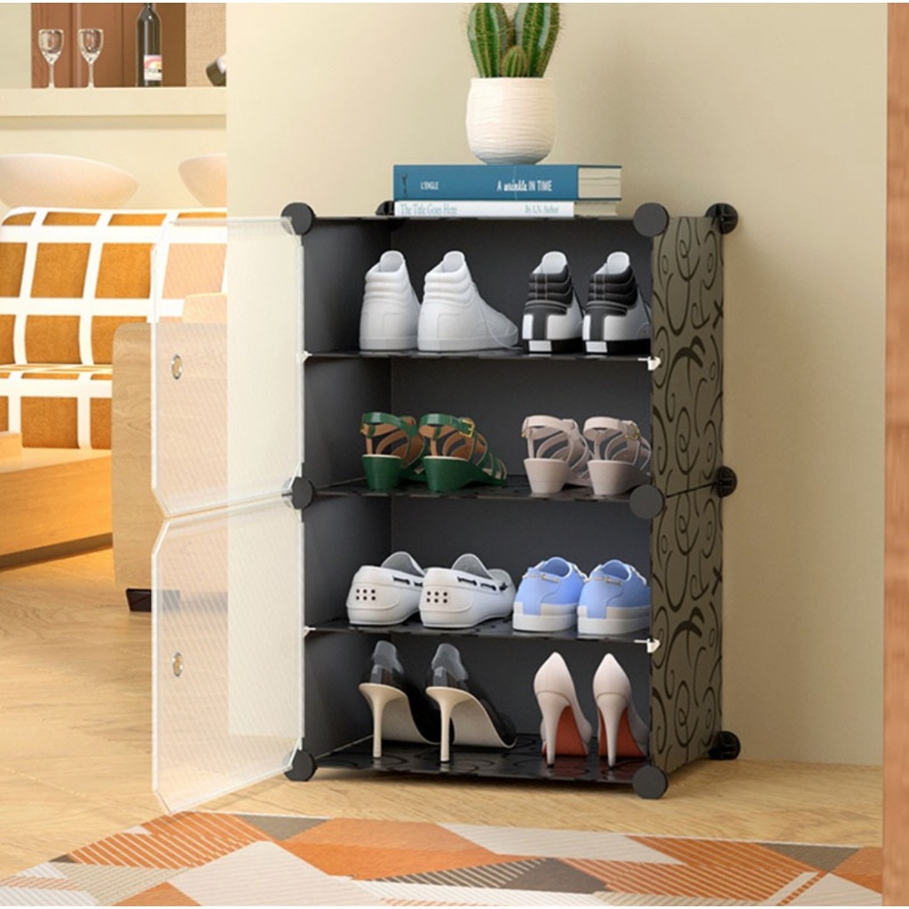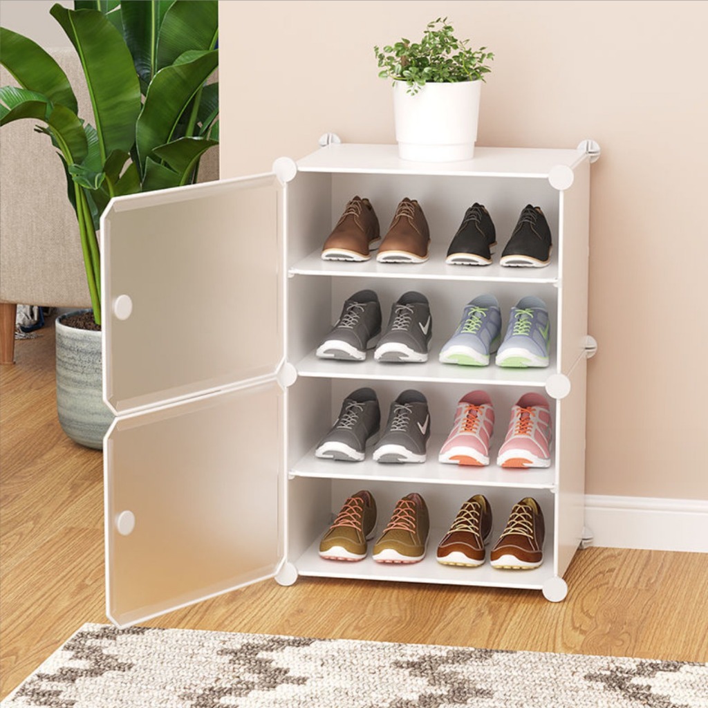 Rak Sepatu Portable 2 Kolom 4 Kotak Sepatu Tebal Tertutup Anti Debu Shoe Rack Serbaguna