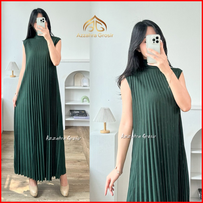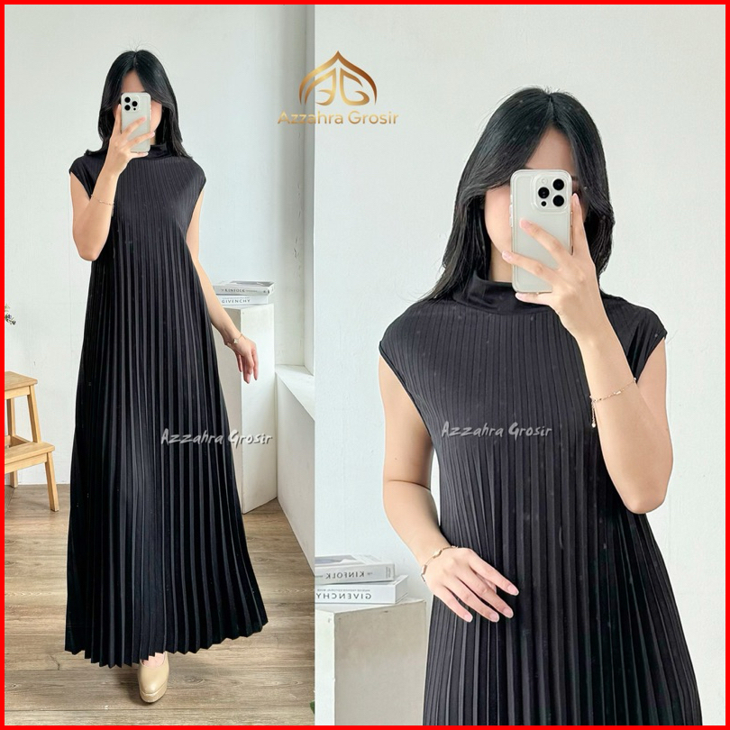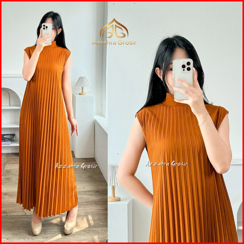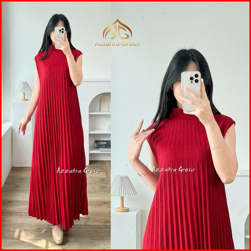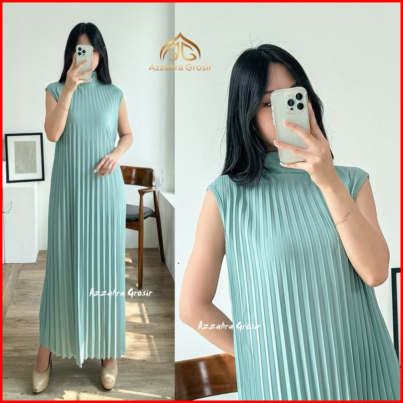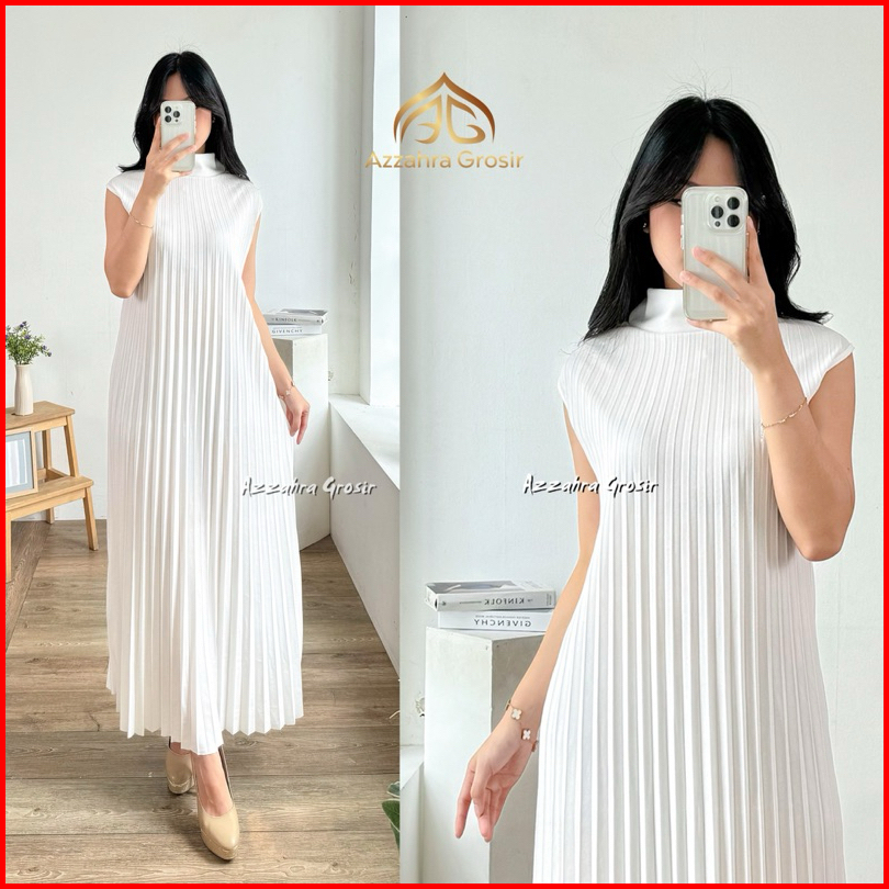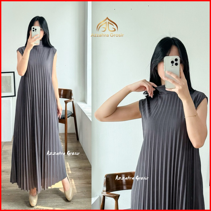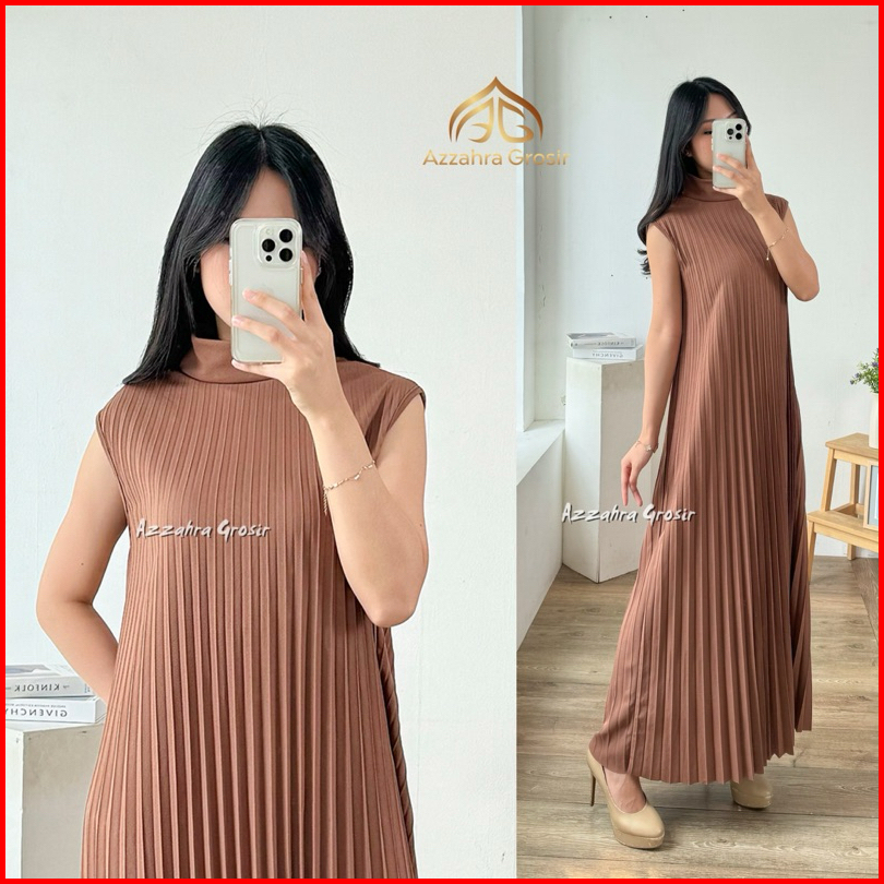 Am - Inner Kelly Plisket Dress Gamis Plisket Inner Tanpa Lengan Homy Dress 657-8283