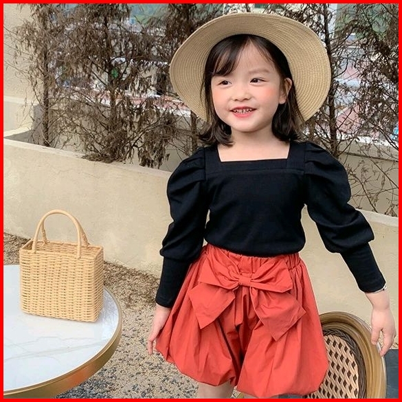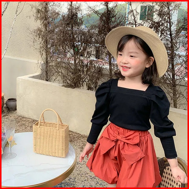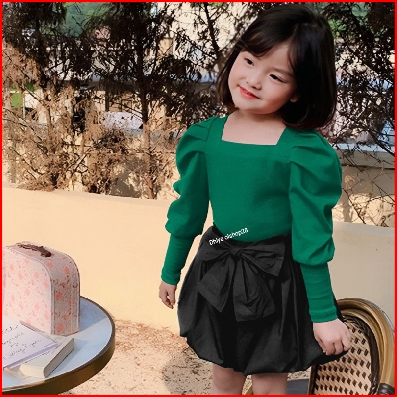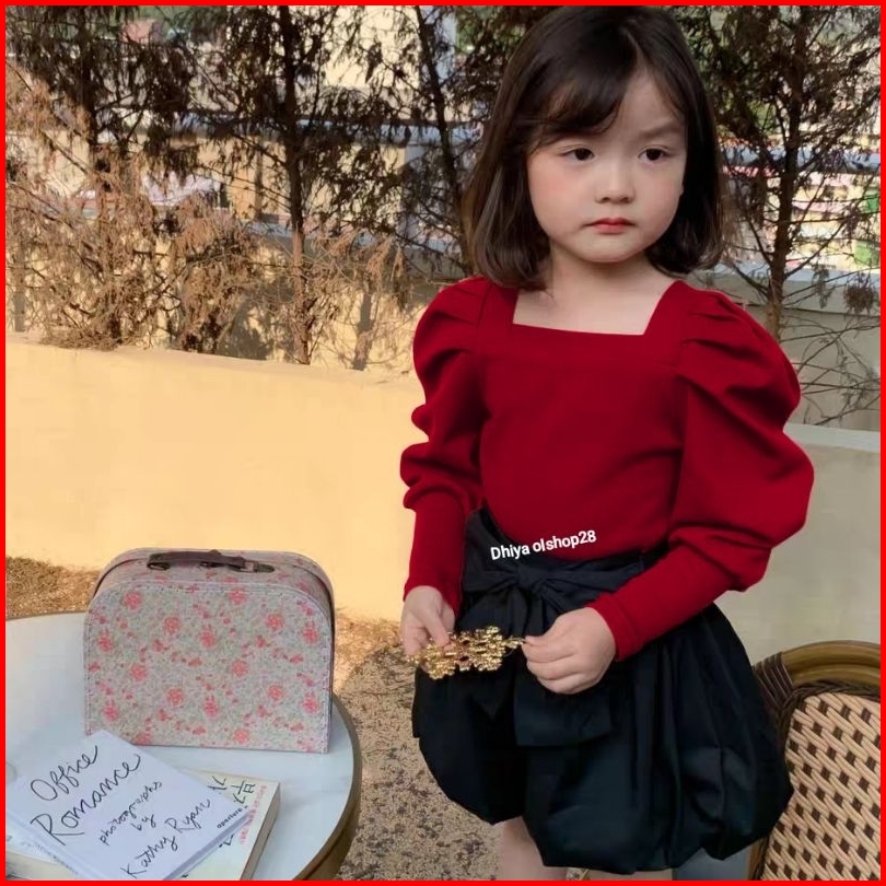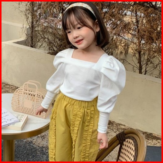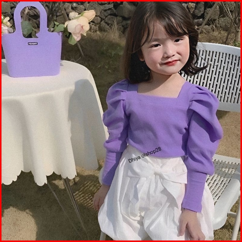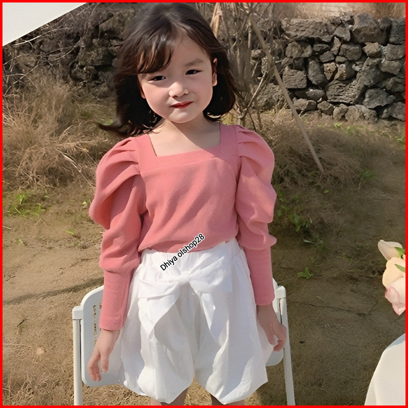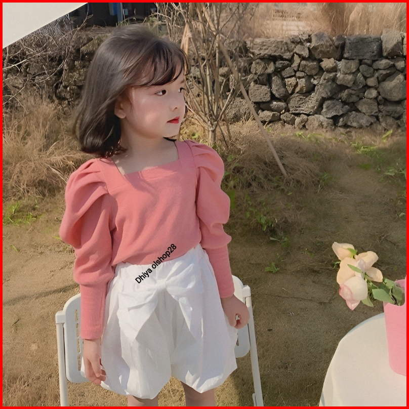 Sabrina Anak Perempuan Model Korea Style Atasan Lengan Panjang Pundak Lipat Pakaian Anak Perempuan