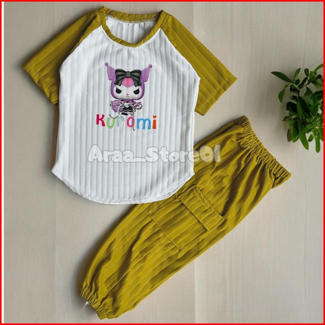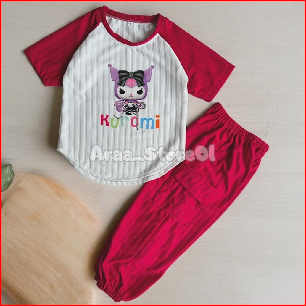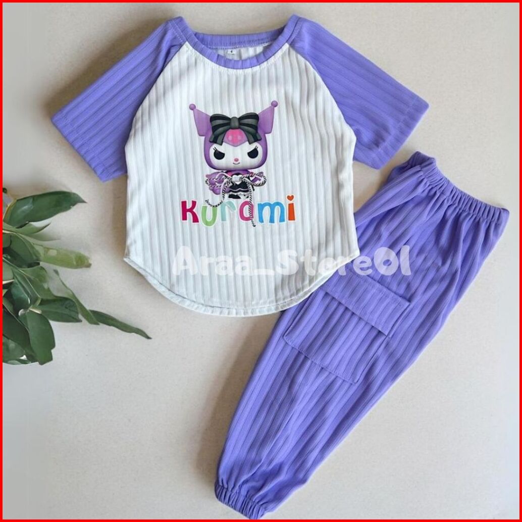 Setelan Kuromi Anak Perempuan Celana Joger Cargo Bahan Knitt Premium 3-12 Tahun Baju