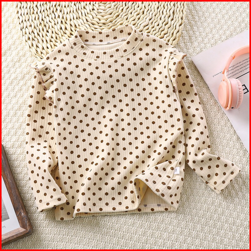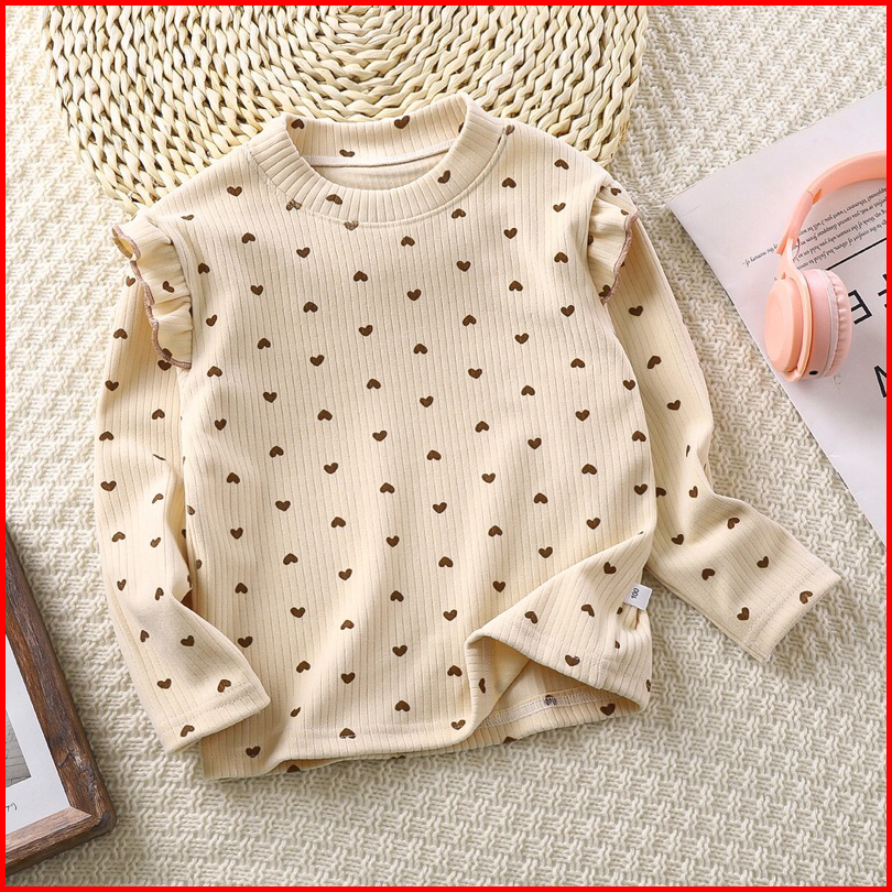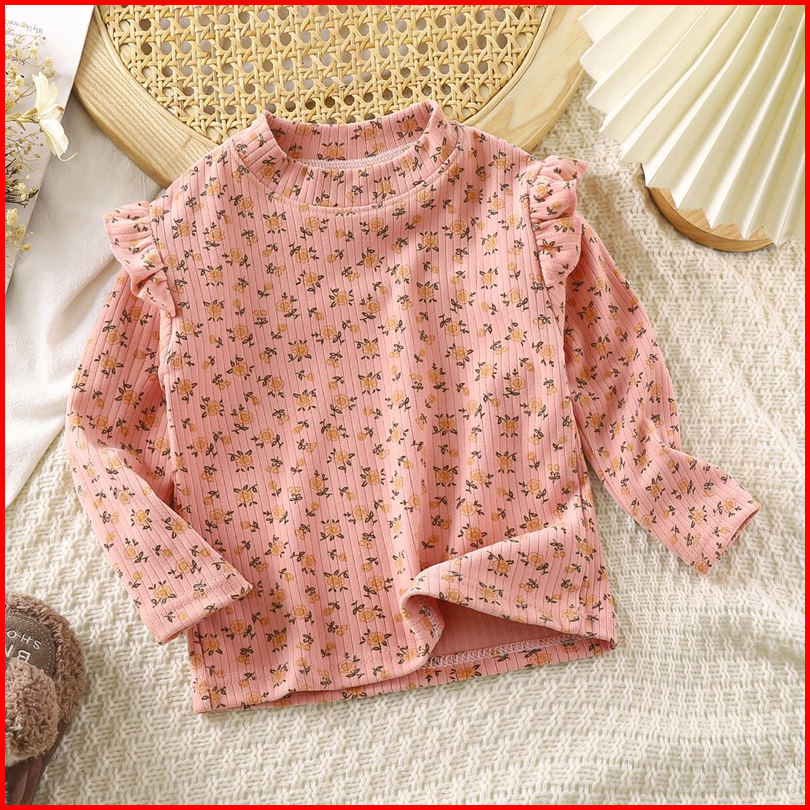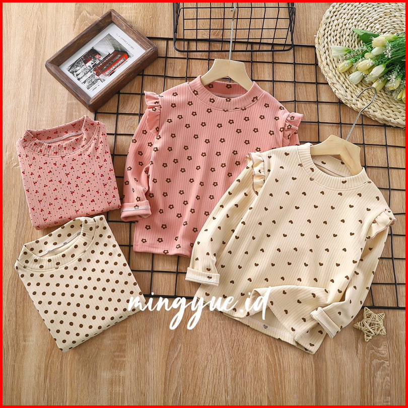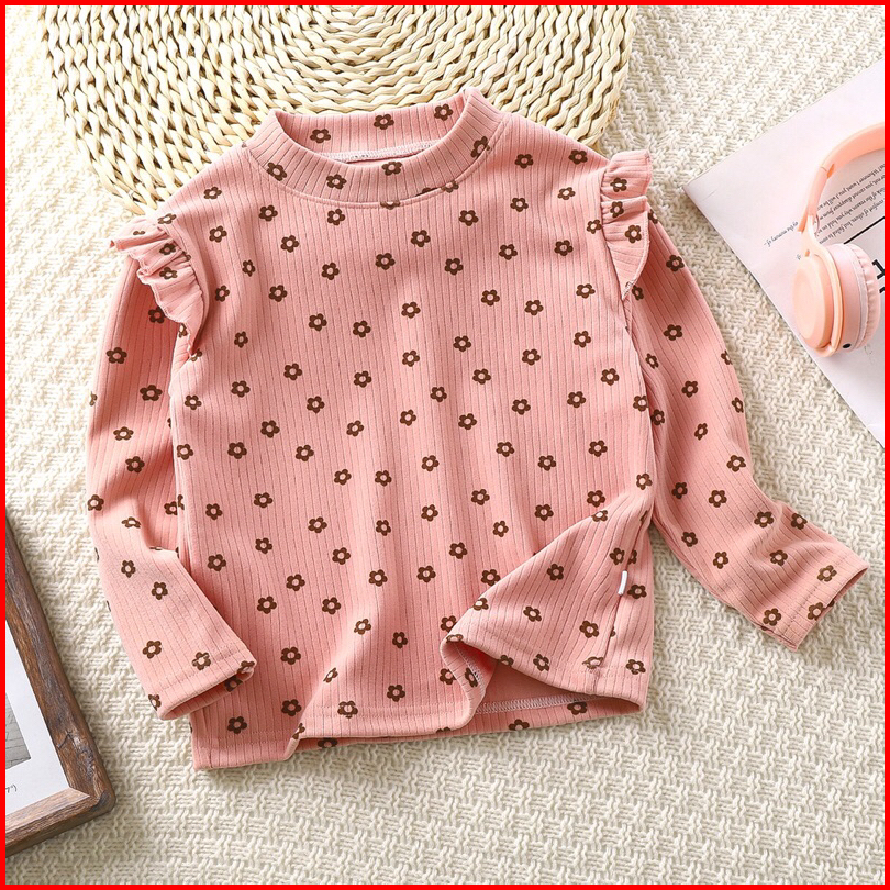 Atasan Anak Perempuan Lengan Panjang Kaos Anak Perempuan Tangan Rampel Gaya Modis Bahan Halus