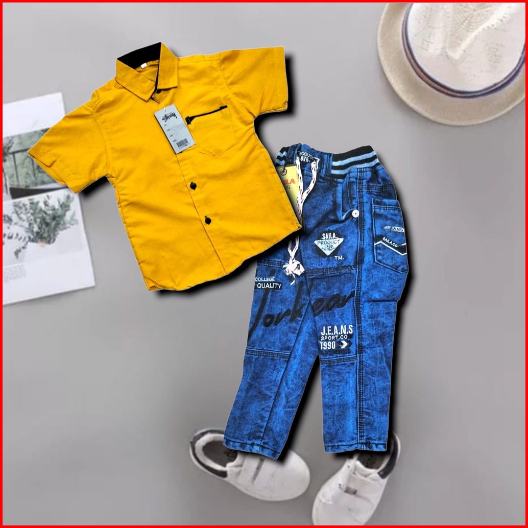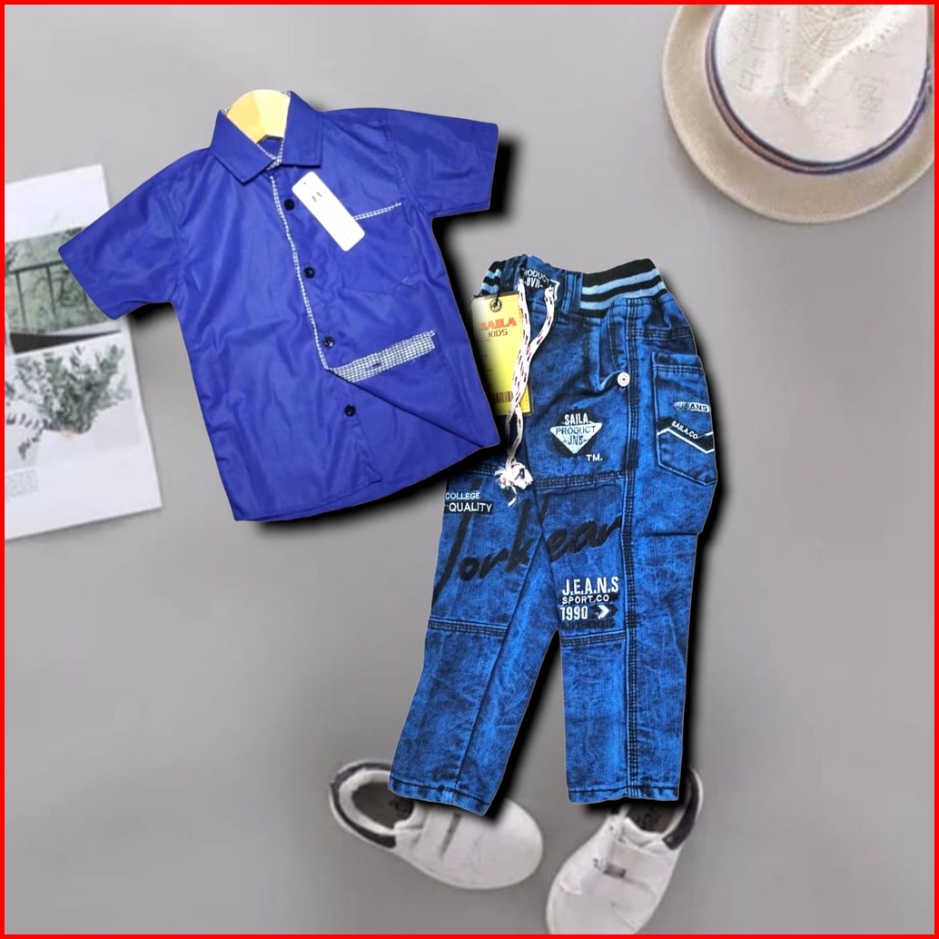 Promo Setelan Celana Denim Kemeja Polos 1-12 Tahun Model Terbaru