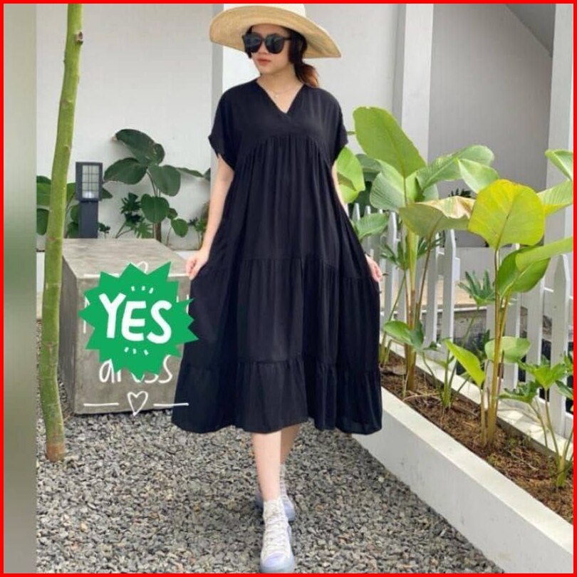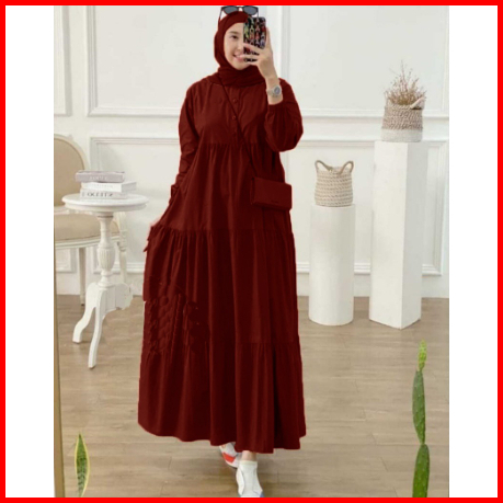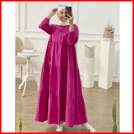Gamis Wanita Terbaru Dress Rayon Polos Muslim Dewasa Simpel Kekinian