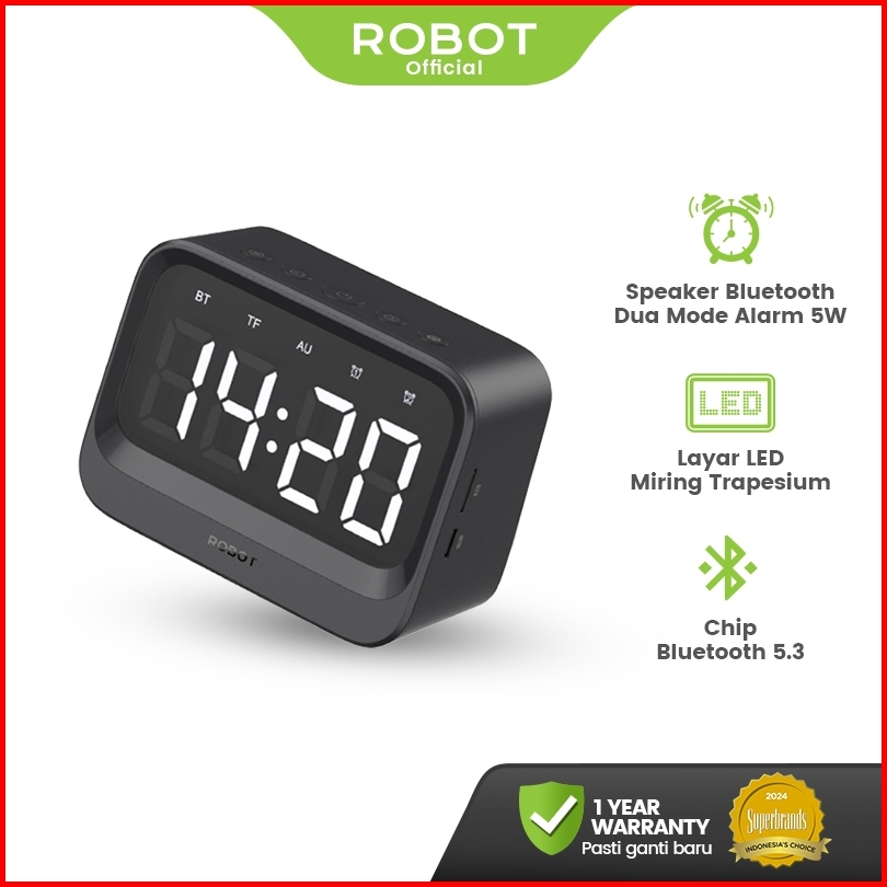 Robot Speaker Alarm Rb620 Led Digital Clock Dual Smart Alarm Bt 5.3 Portable - Garansi 1 Tahun