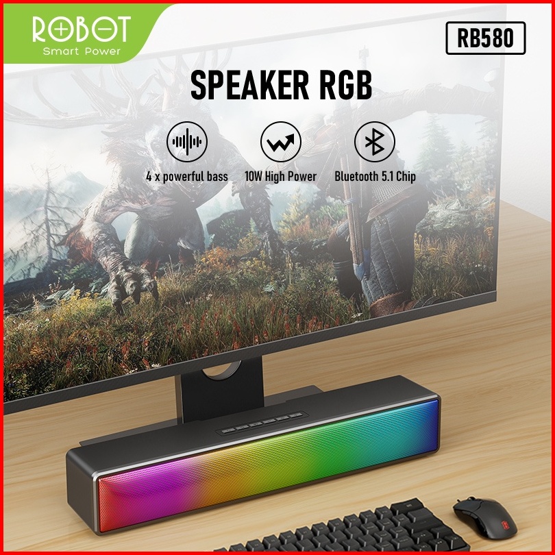 Speaker Bluetooth Robot Rb580 Soundbar 10w Ultra Bass With Rgb Light Bluetooth Chip 5.1 Aux Tf Card Portable Audio Wirel