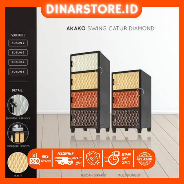 AKAKO - Lemari Pakaian Plastik Swing Catur 1 Pintu Diamond dan Polos Susun 2, 3, 4 dan 5