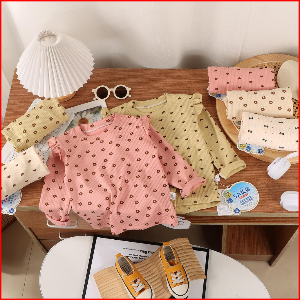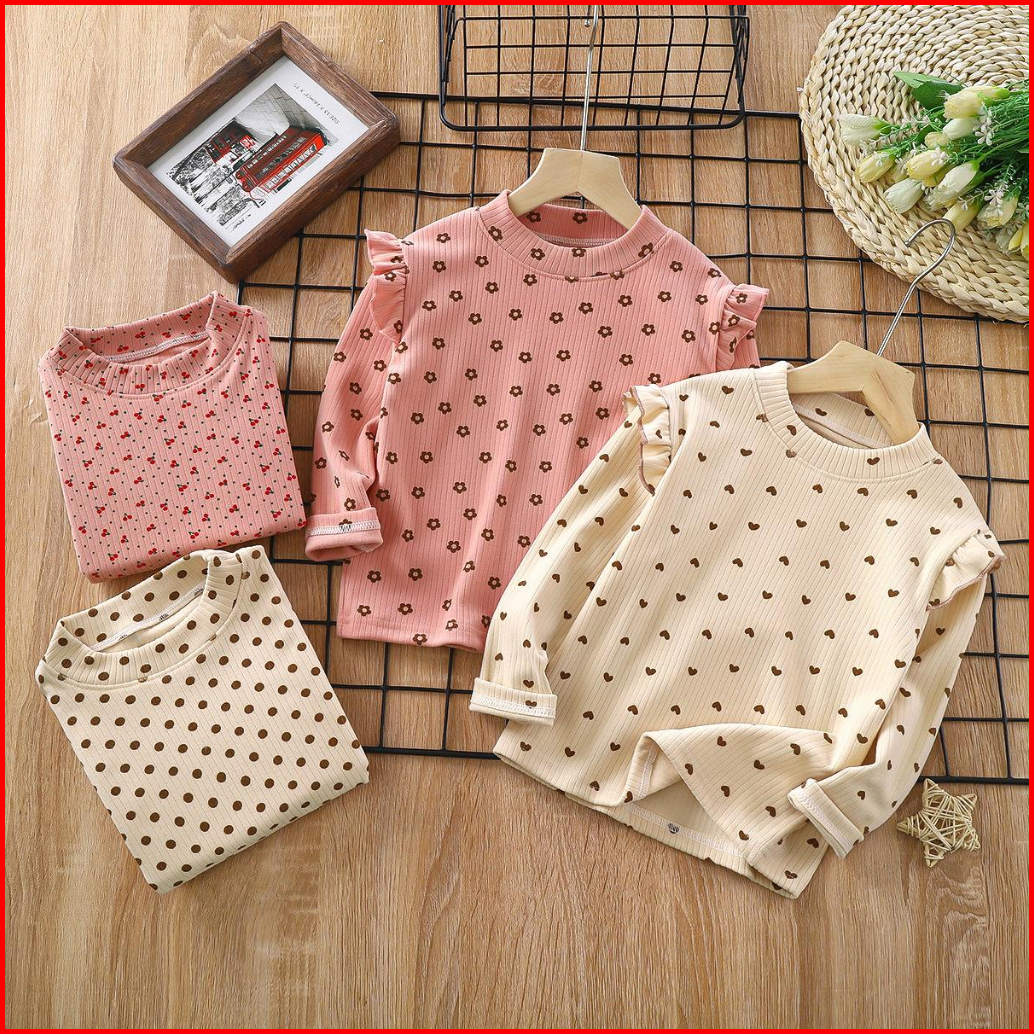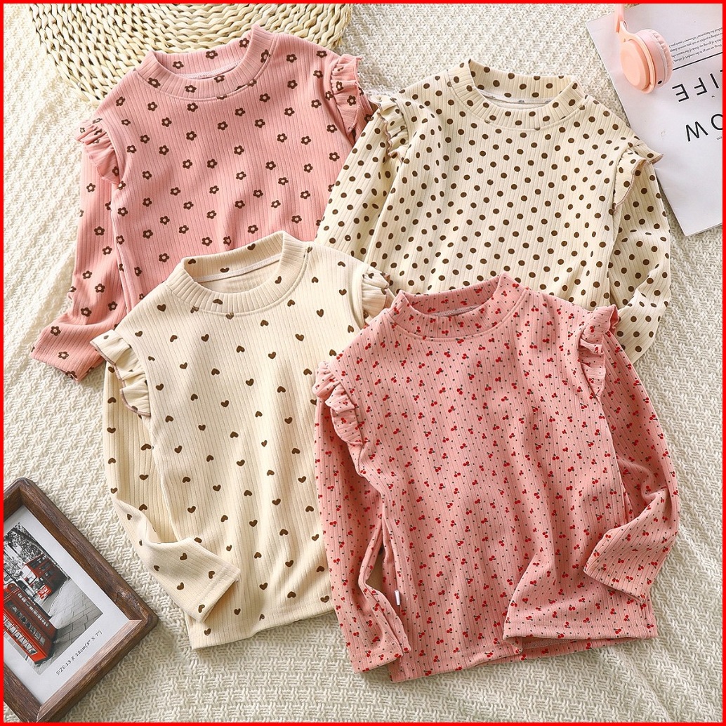 Puncak 9.9 Bykiddos Atasan Kaos Anak Perempuan Lengan Panjang Tangan Rampel Motif Lucu Gaya Modis