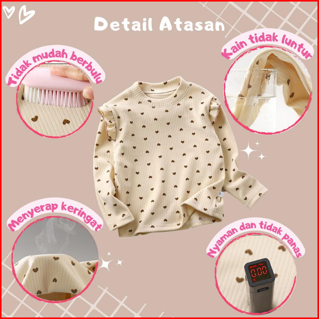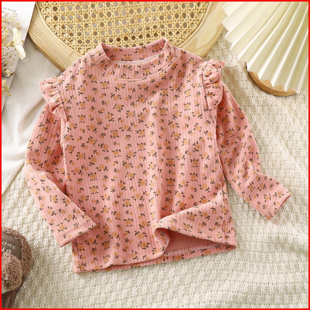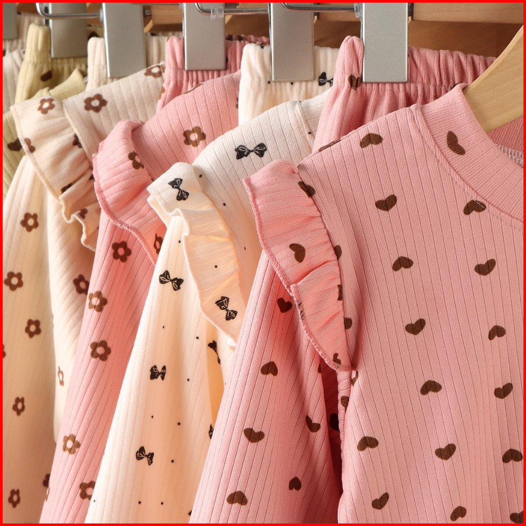 Puncak 9.9 Bykiddos Atasan Kaos Anak Perempuan Lengan Panjang Tangan Rampel Motif Lucu Gaya Modis