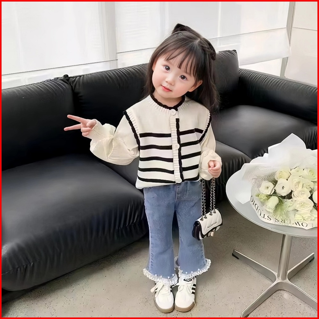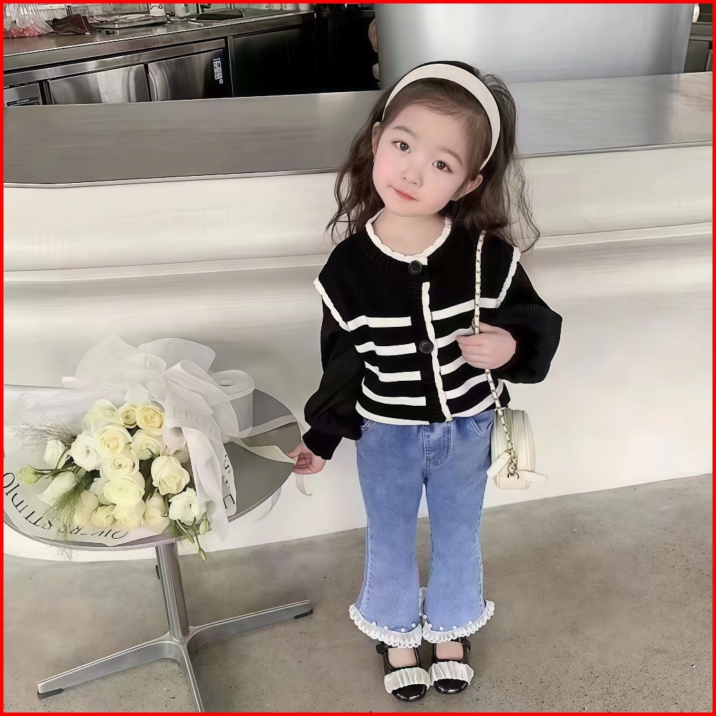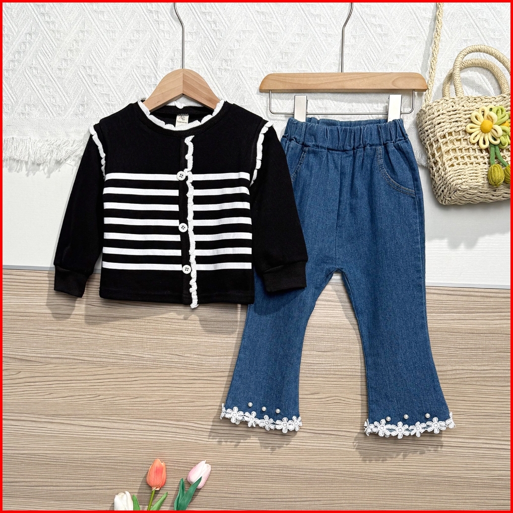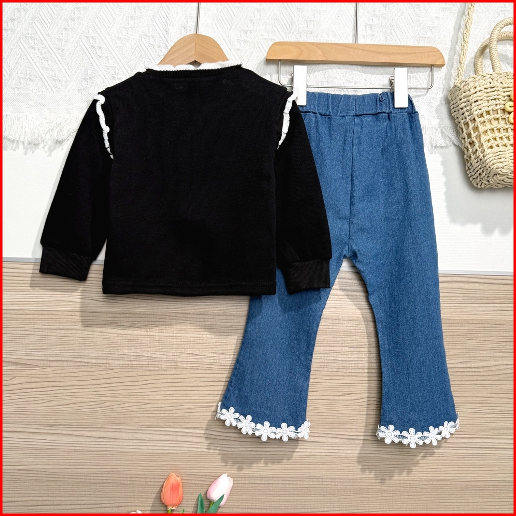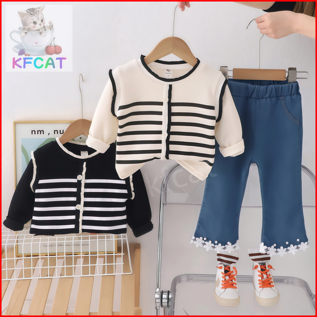 Kf Cat Setelan Lengan Panjang Anak Perempuan Bahan Katun Celana Jeans Casual Style Usia 1-4 Tahun