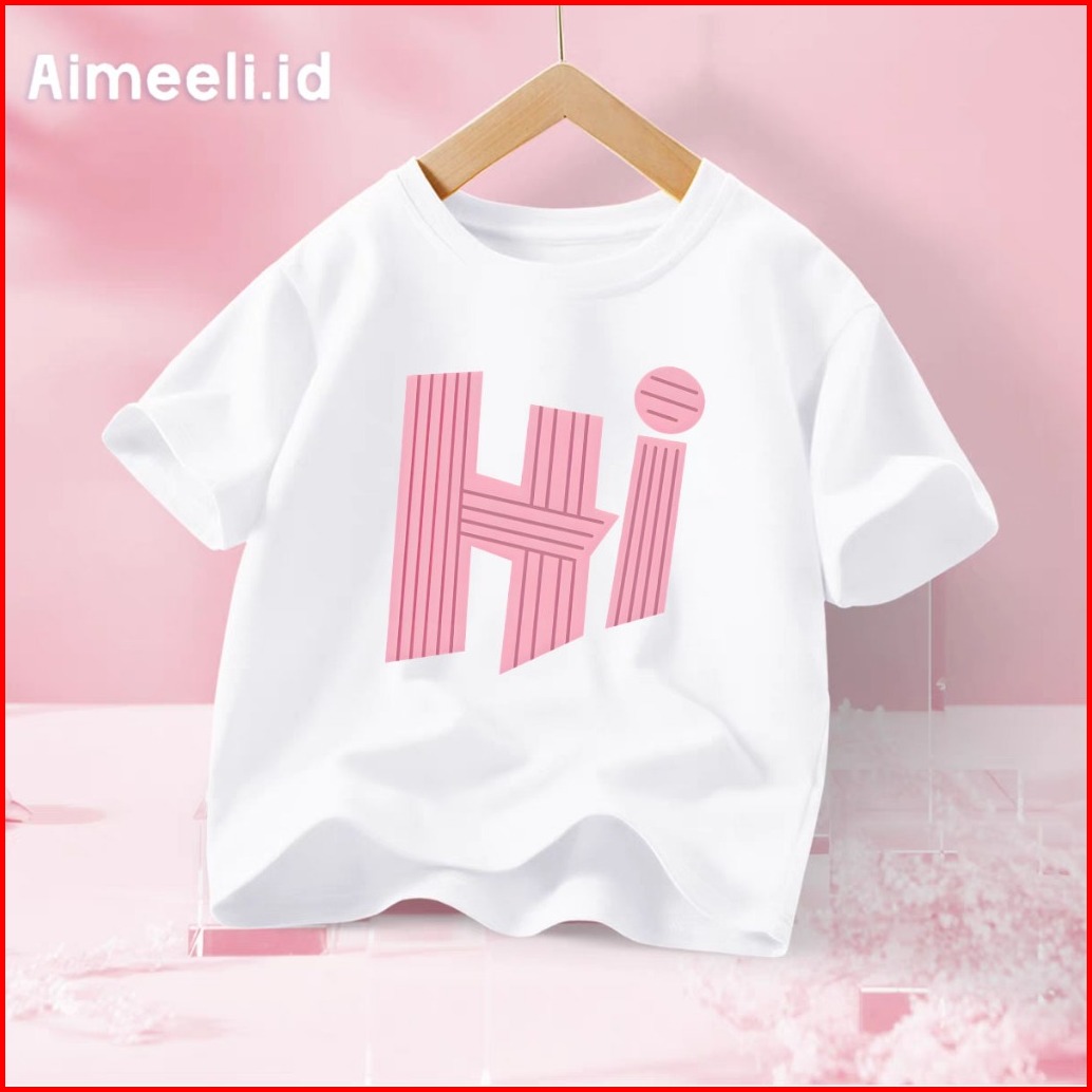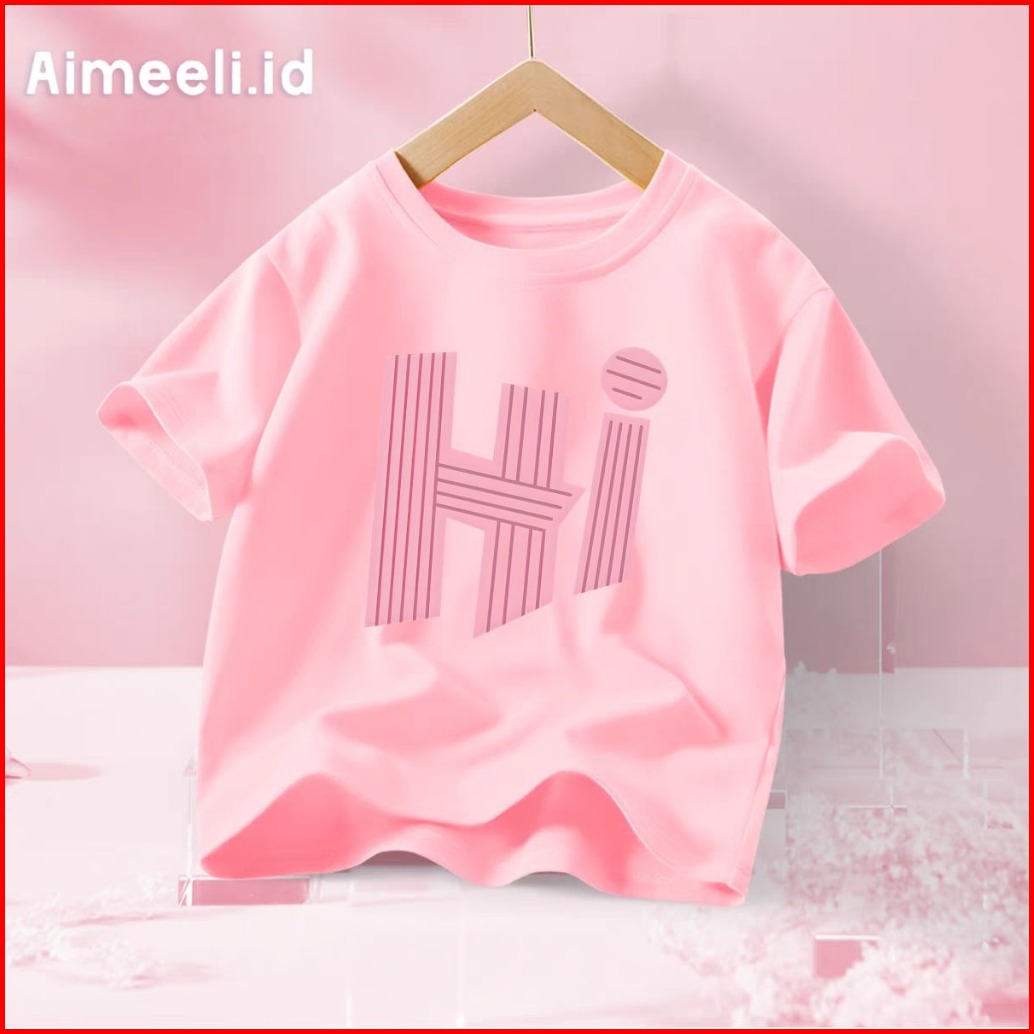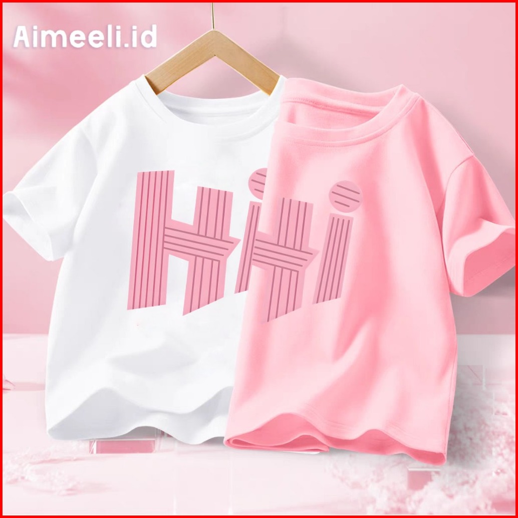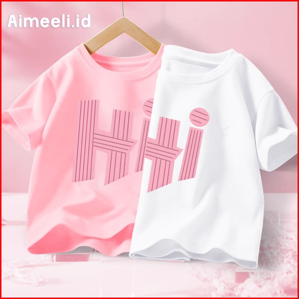 Aimeeli Baju Atasan Kaos Anak Perempuan Baju Anak Laki Laki Cartoon Hi T-shirt Terbaru Import 2-12 Tahun 100 Cotton Comb