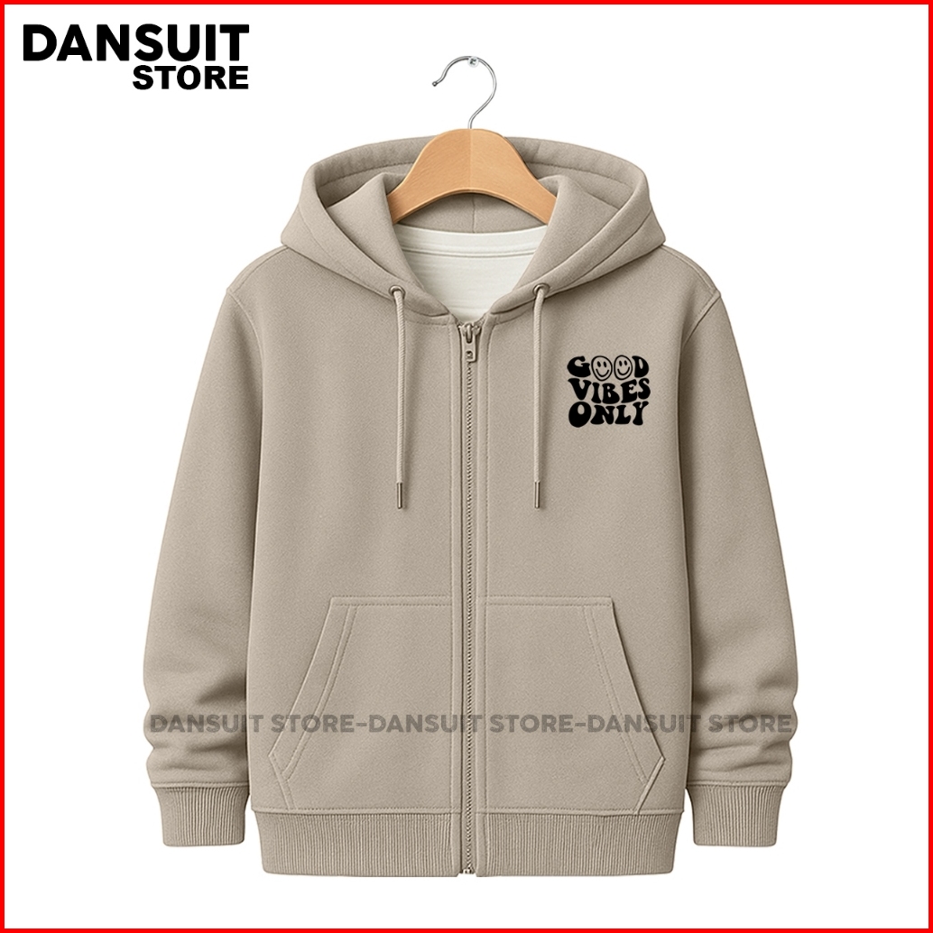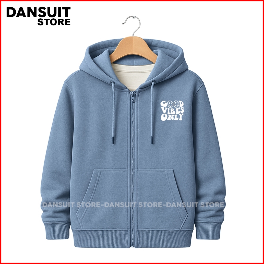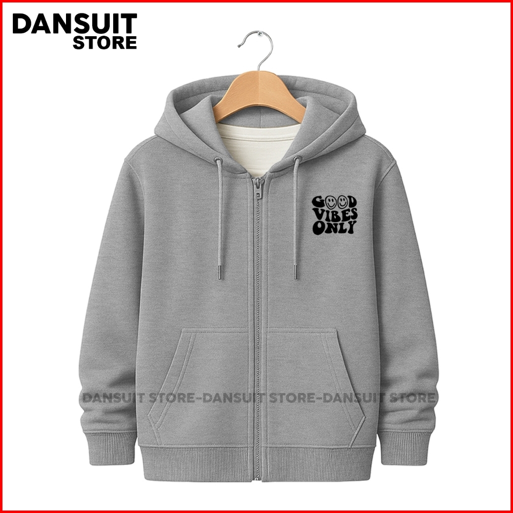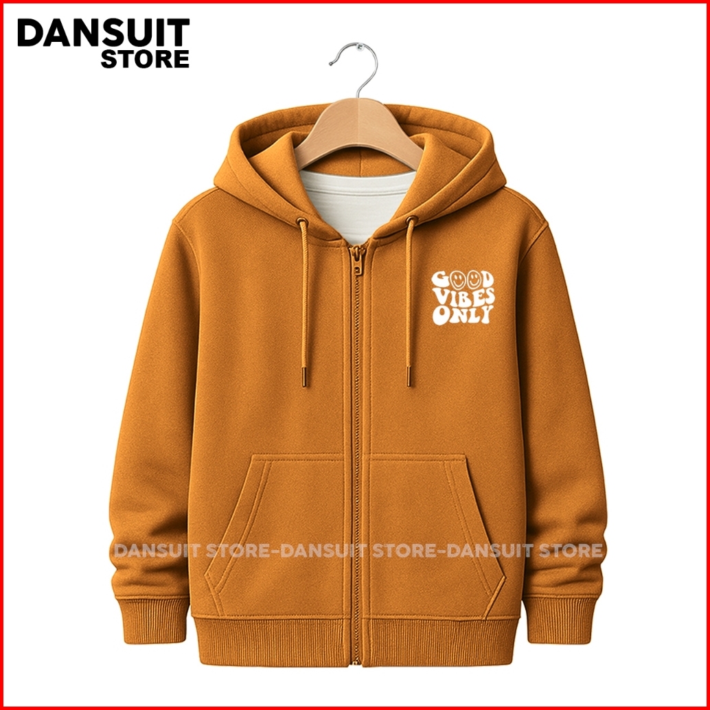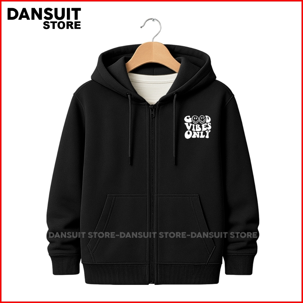 Jaket Hoodie Zipper Anak Laki-laki Perempuan Umur 4-14 Tahun Sablon Good Vibes Only Bahan Fleece Tebal Premium