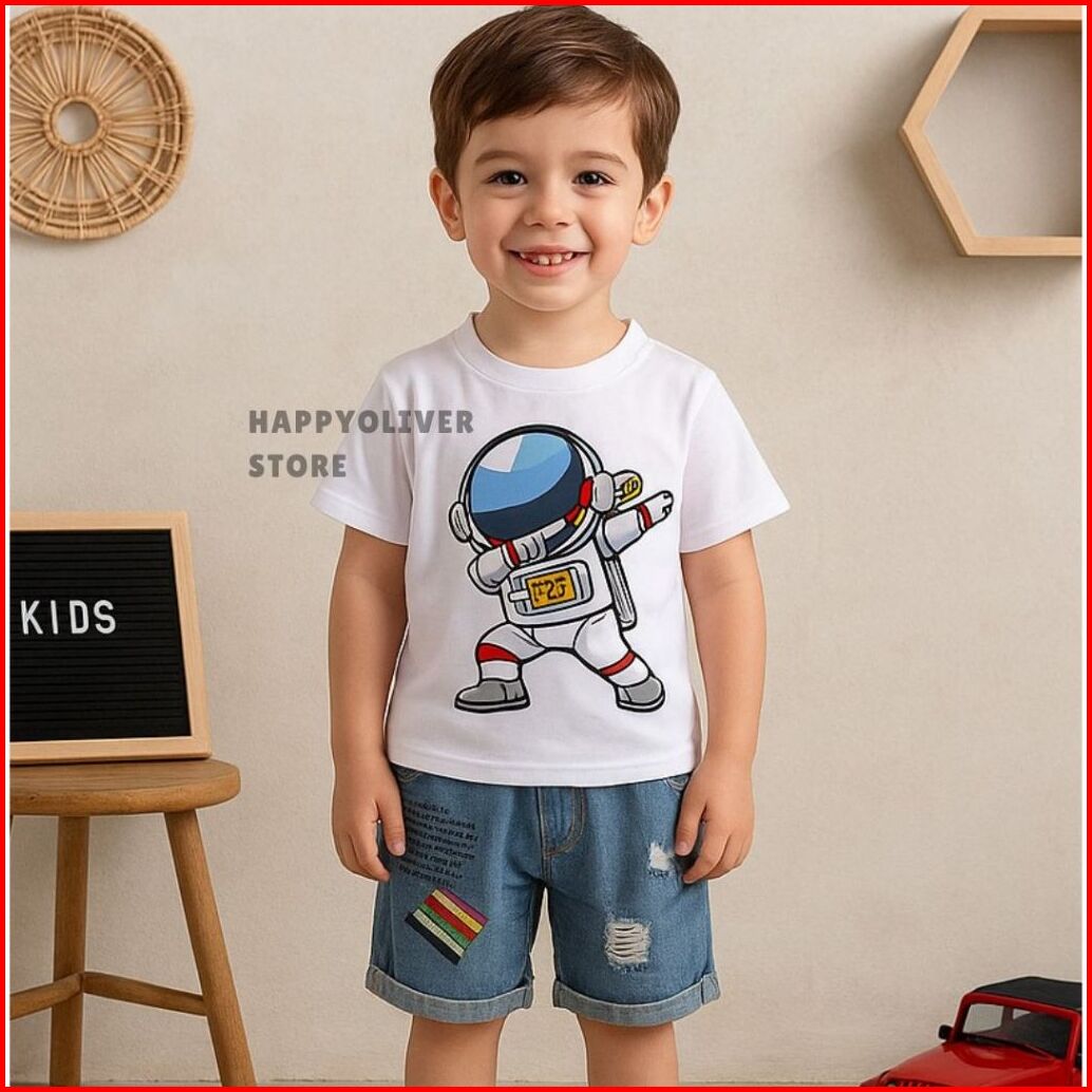 Promo 9.9 Happyoliver Set Astronout Space Ebv Setelan Bayi Laki-laki Lengan Pendek Baju Anak Laki Laki