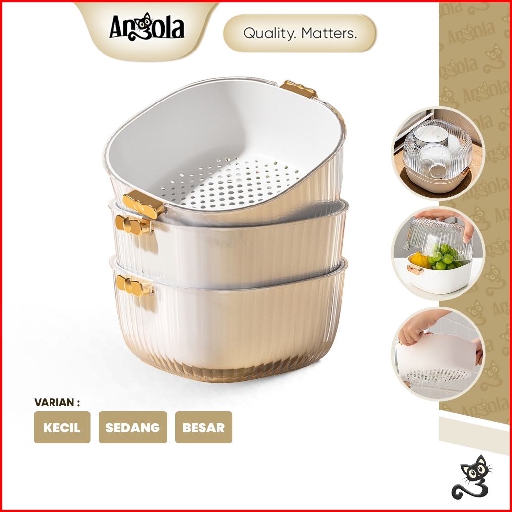 Angola Saringan Sayur Buah Dengan Tutup E81 Keranjang Buah Pengering Sayuran Saringan Serbaguna