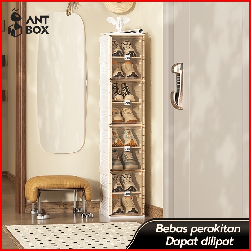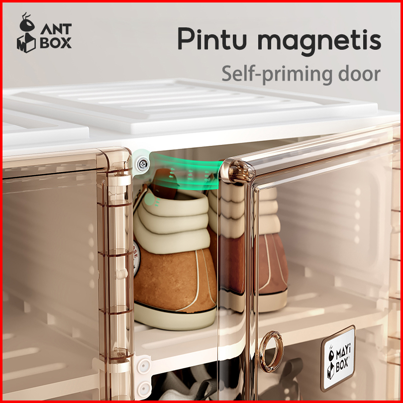 Antbox Rak Sepatu Susun 1 Baris 2-10 Pasang Sepatu Rak Sepatu Lipat Tertutup Pintu Magnet Serbaguna