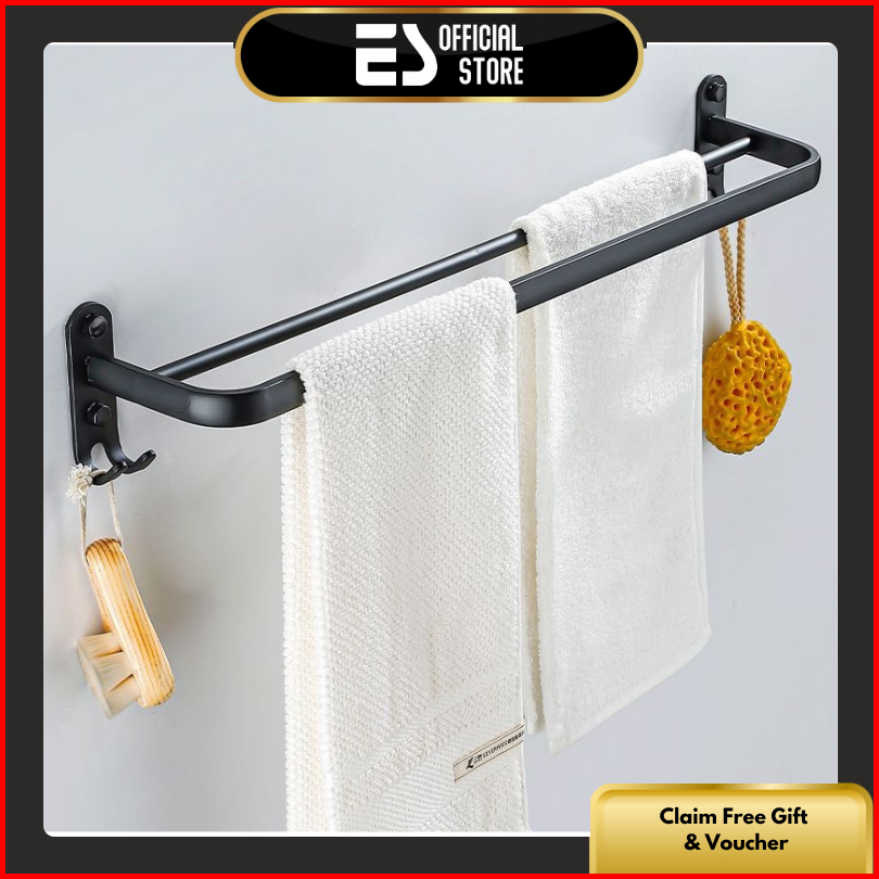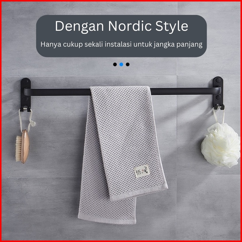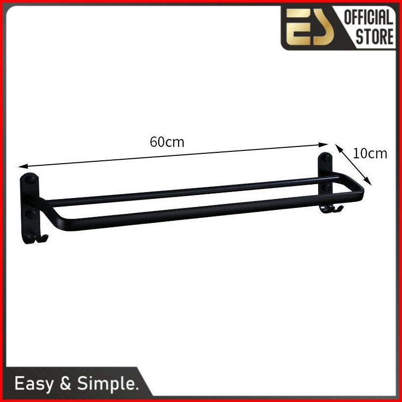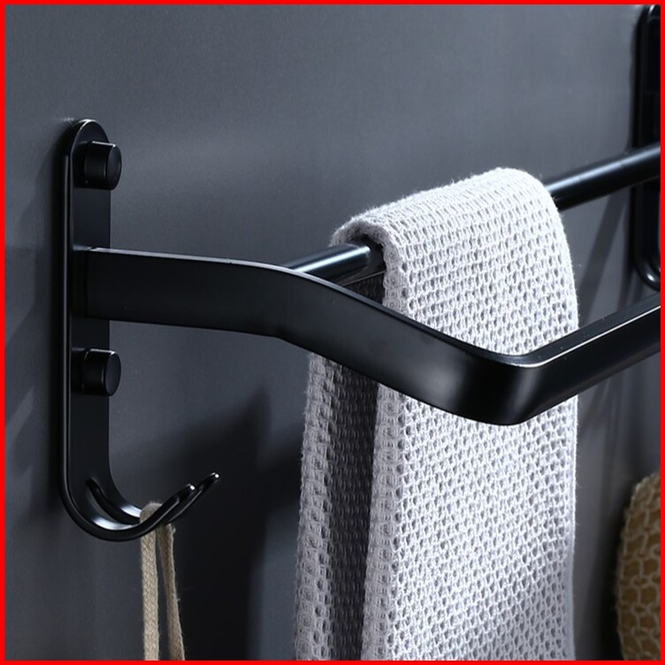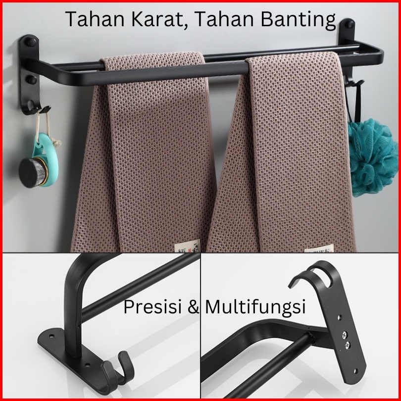 Es Rak Kamar Mandi Stainless Steel Gantungan Handuk Dan Baju Warna Hitam 1 Susun