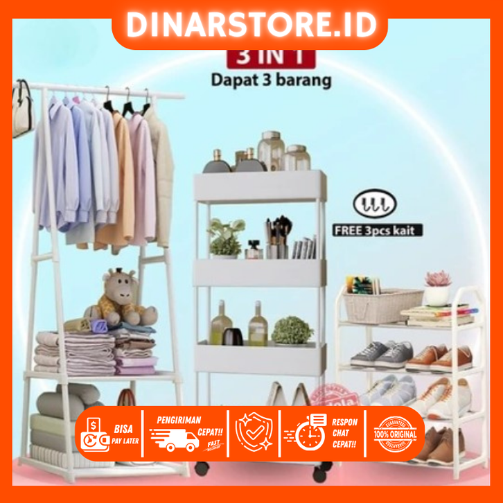 Combo 3 in 1 triangle rak baju + square rak susun serbaguna 4 tingkat + rak sepatu 4 tingkat