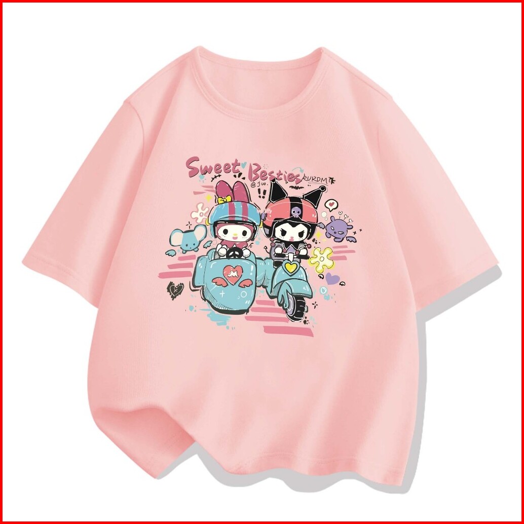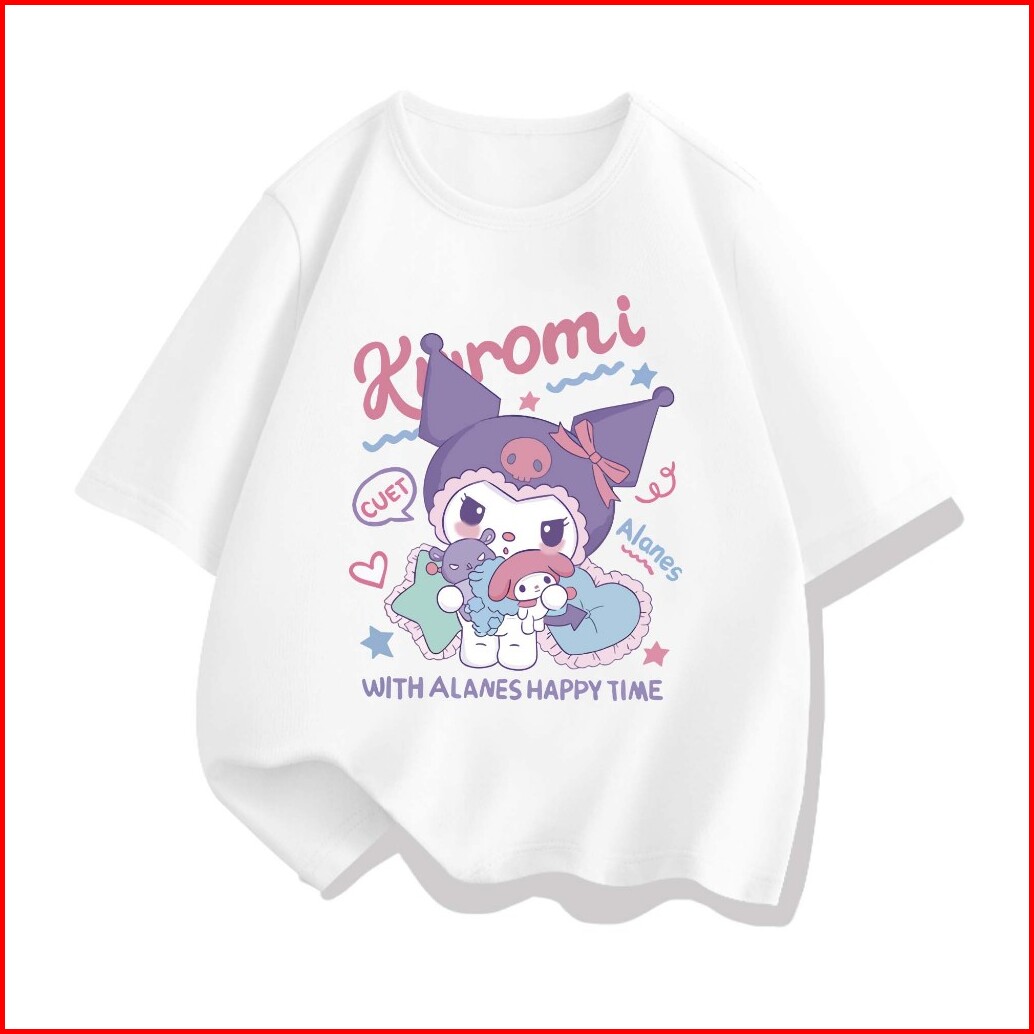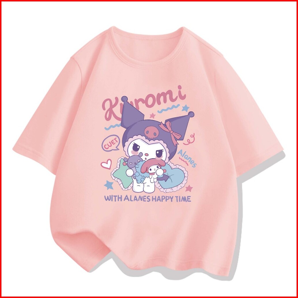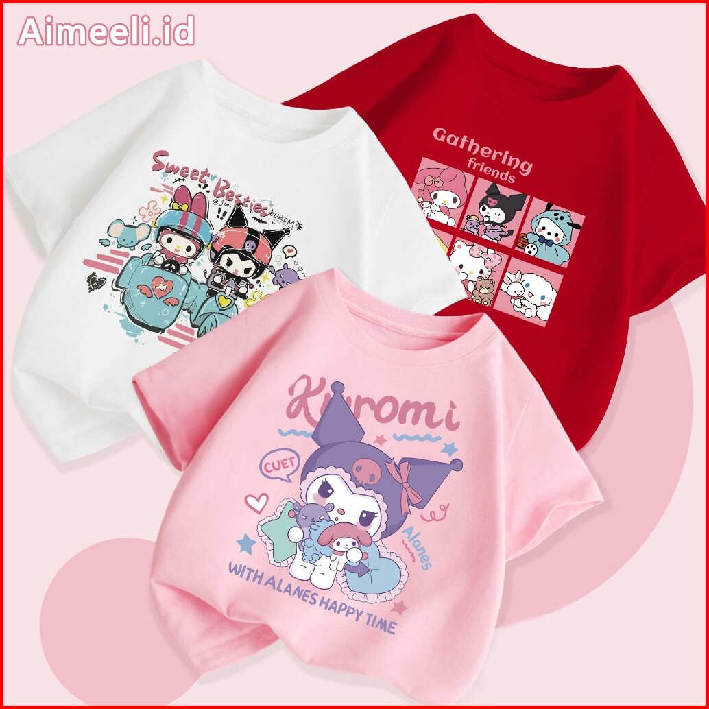 Aimeeli Baju Kaos Atasan Anak Perempuan Sanrio Kuromi T-shirt Terbaru Import 2-12 Tahun Kaos Anak Perempuan Kaos Anak Im