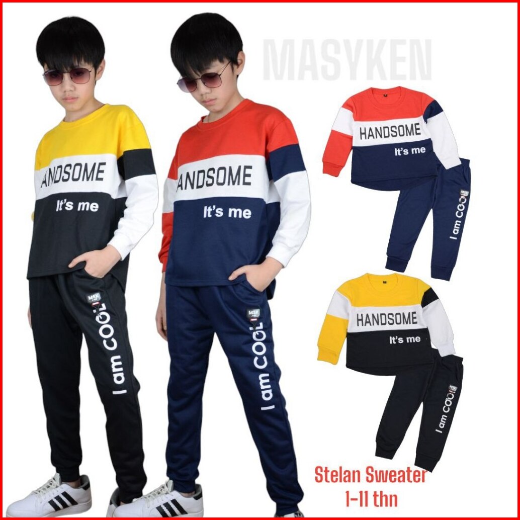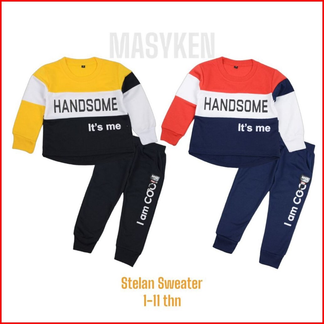 Masyken Handsome Setelan Sweater Anak Laki Usia 1- 11 Tahun Bahan Babyterry Premium