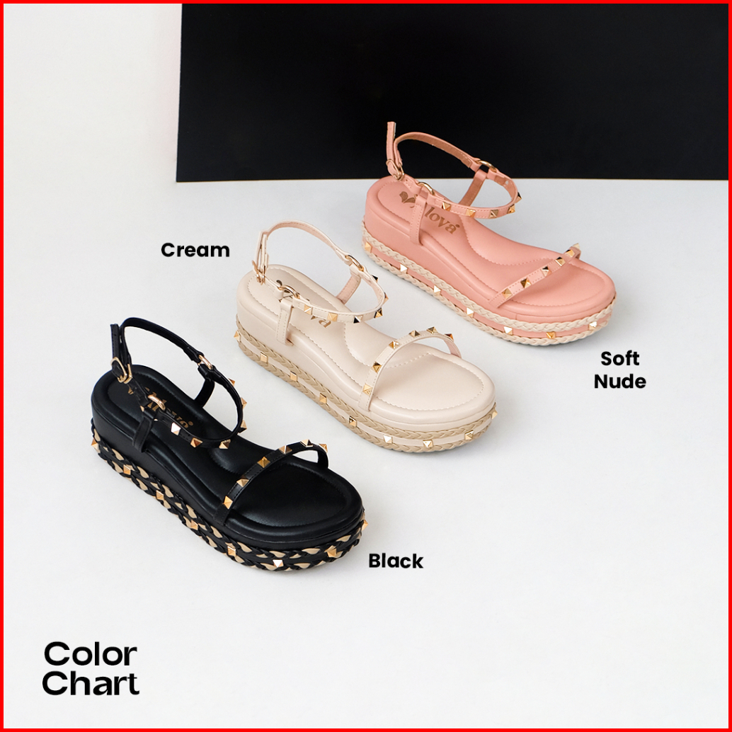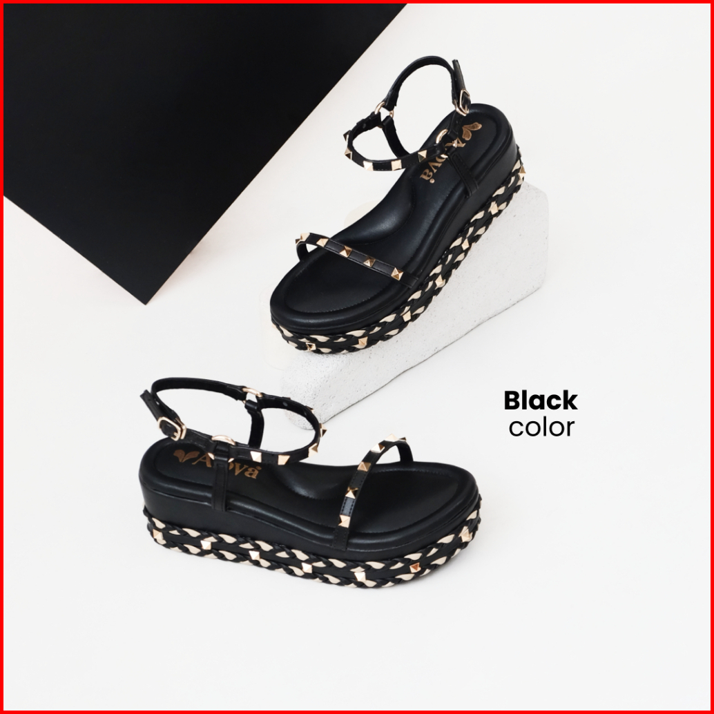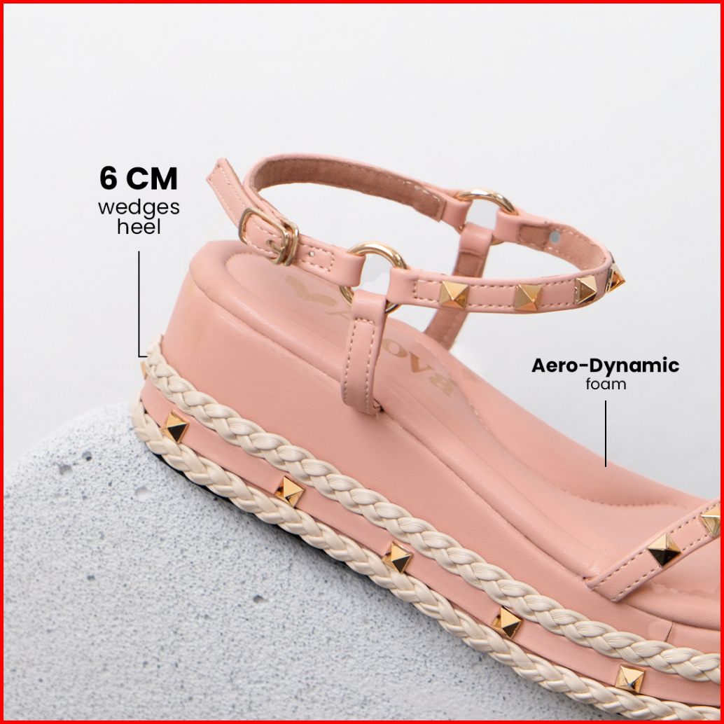 Alivelovearts Glu Glu Wedges 6cm Sandal Wedges Stud Wanita Studed Platform Sendal Kondangan