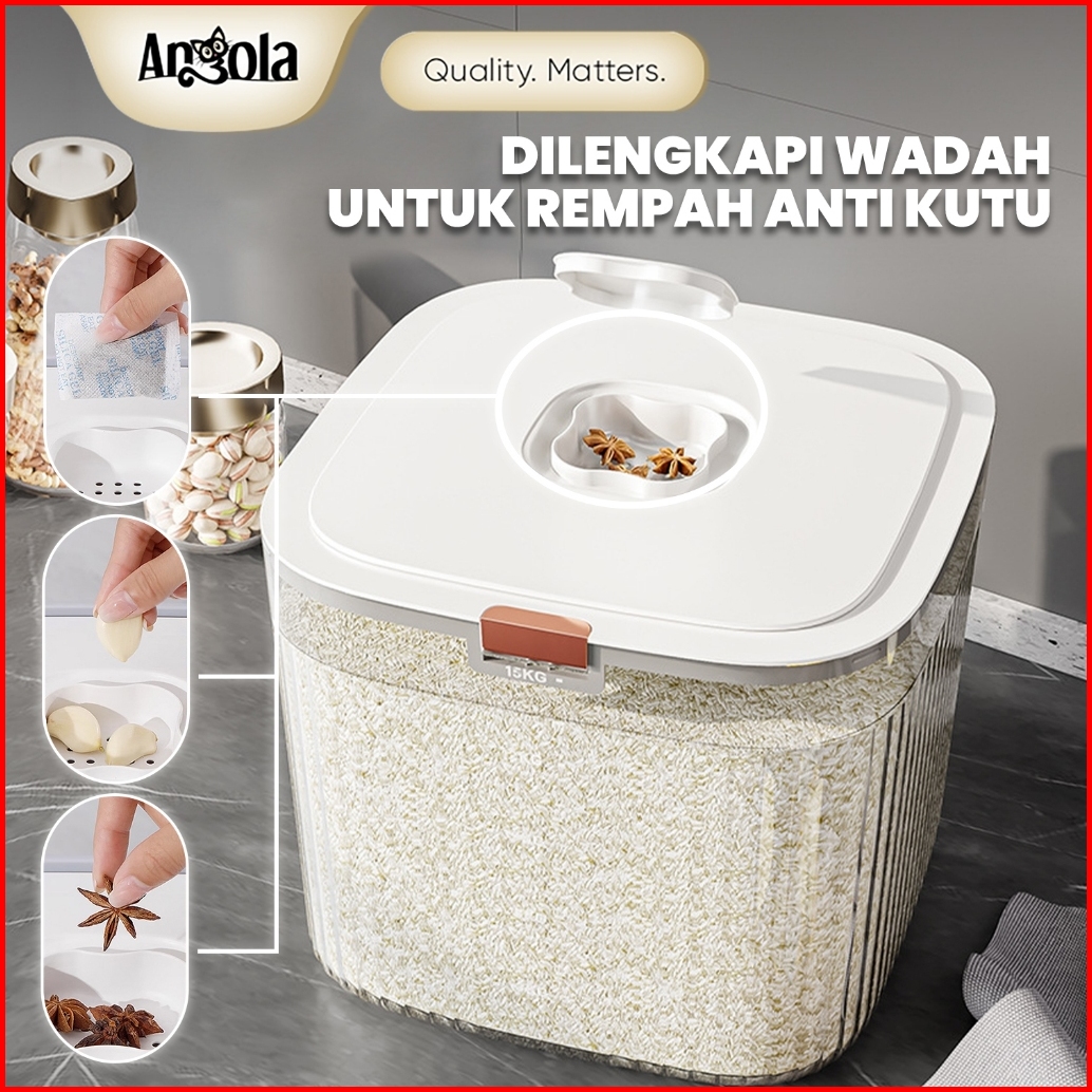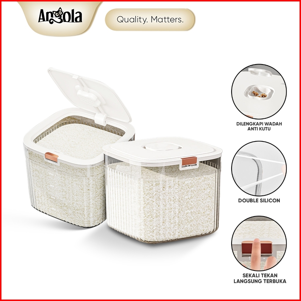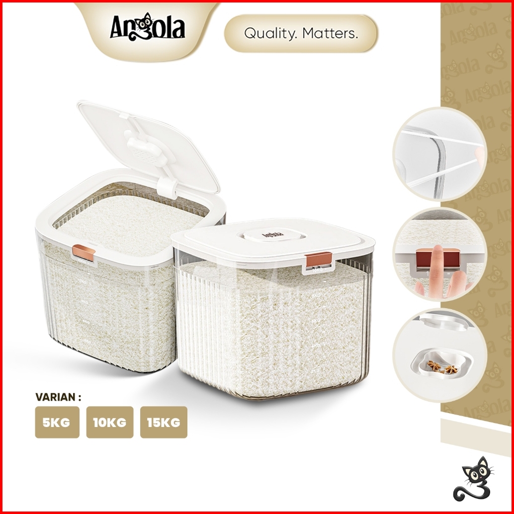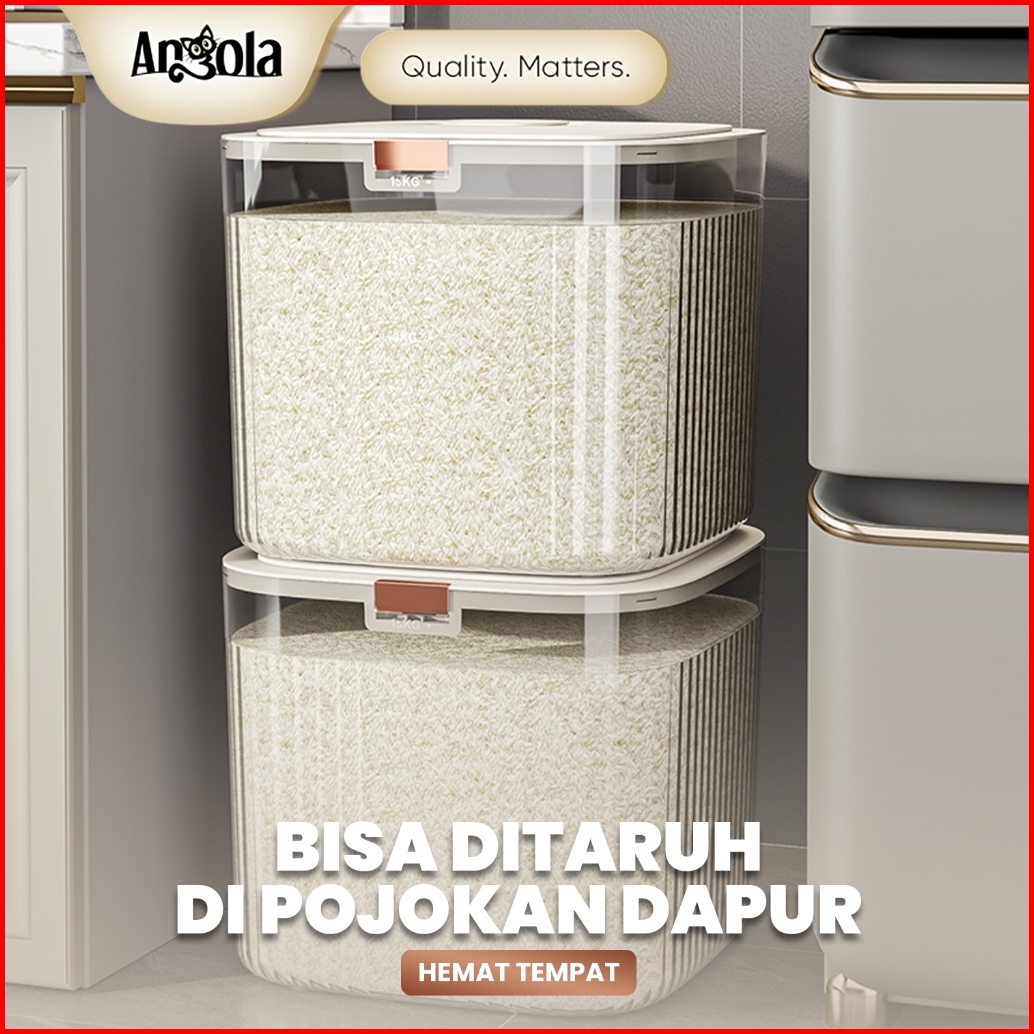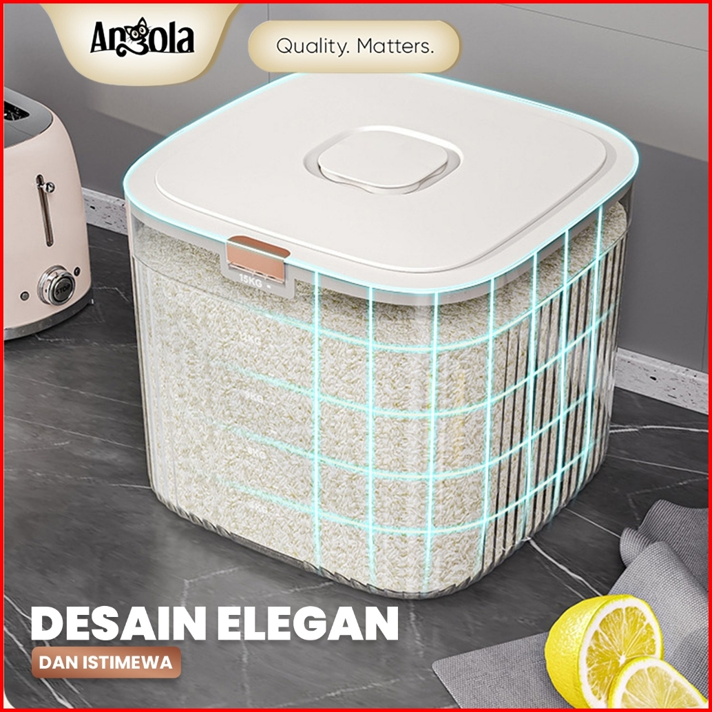 Angola Dispenser Beras Transparan 15kg Tempat Beras E20 E21tempat Penyimpanan Tepung Biji-bijian