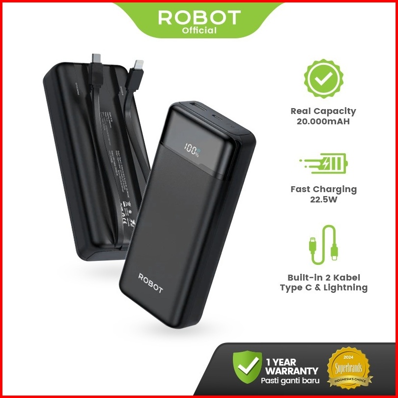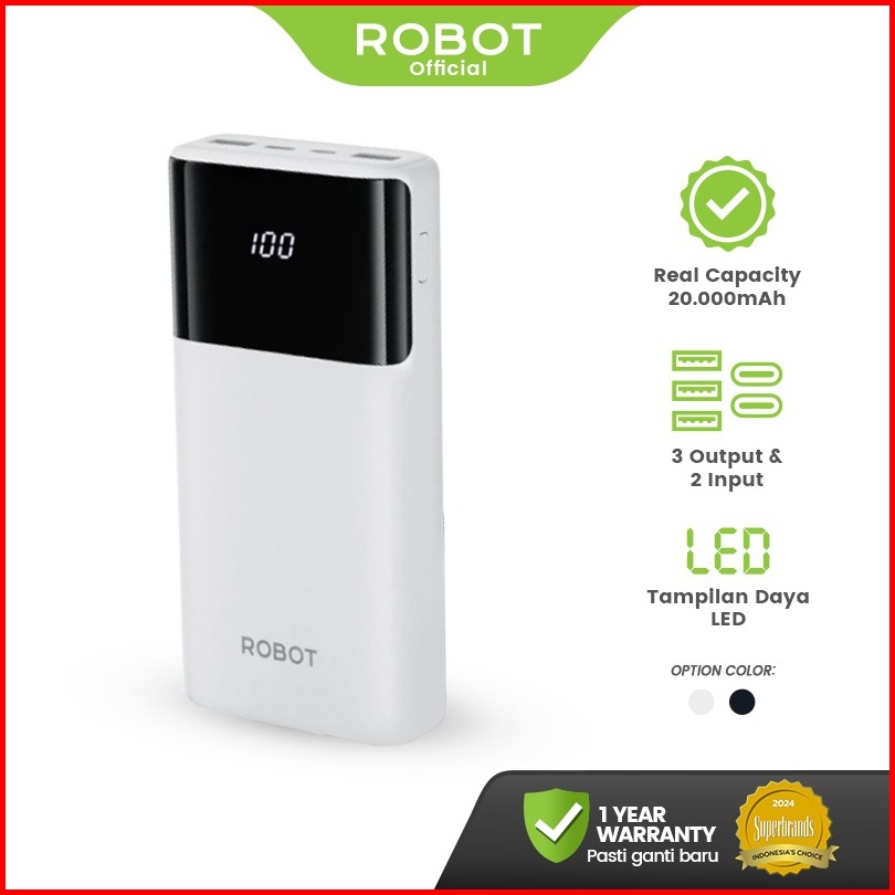 Robot Smart Powerbank Fast Charging 20000mah New Rt22s 15w 3 Port Output With Led Original - Garansi 1 Tahun