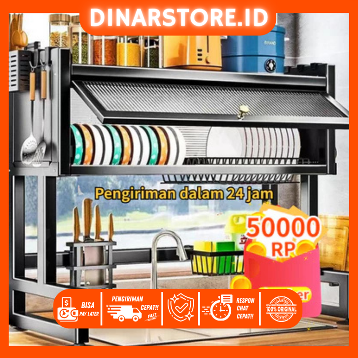 Stainless Steel Rak Cuci Piring Rak Piring Tertutup Kitchen Rak Piring Wastafel Sink Rak Dapur Rak Penyimpanan Dapur/ID6