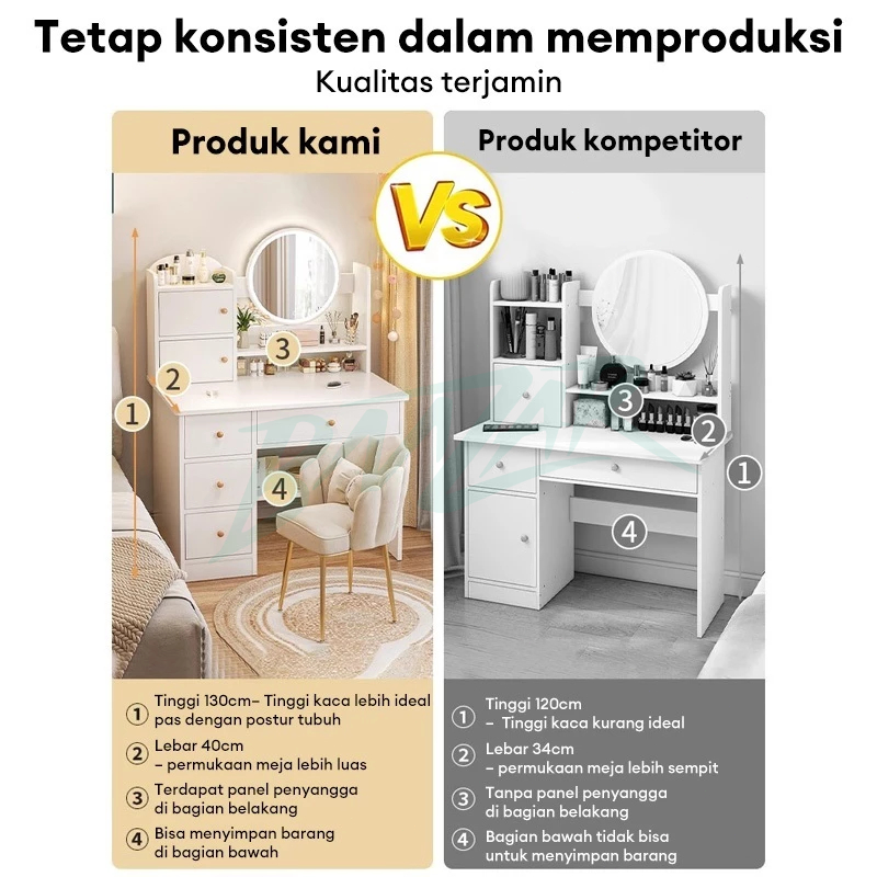 BMZAR Meja Rias Lampu LED Meja Rias Minimalis Meja Rias Lesehan Meja Rias Anak Perempu Meja Rias Modern Meja Rias Oval P
