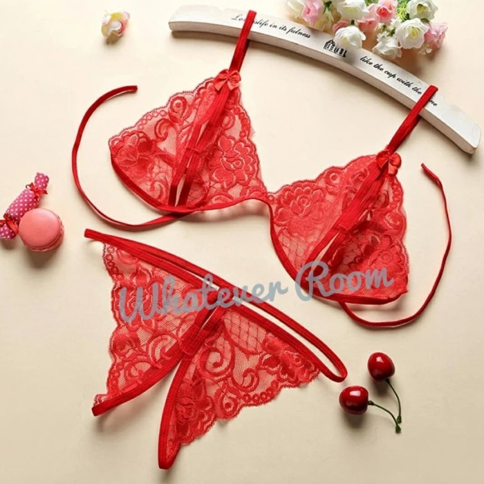 [PROMO]SEXY LINGERIE BRA DAN G STRING SET - MERAH MUDA