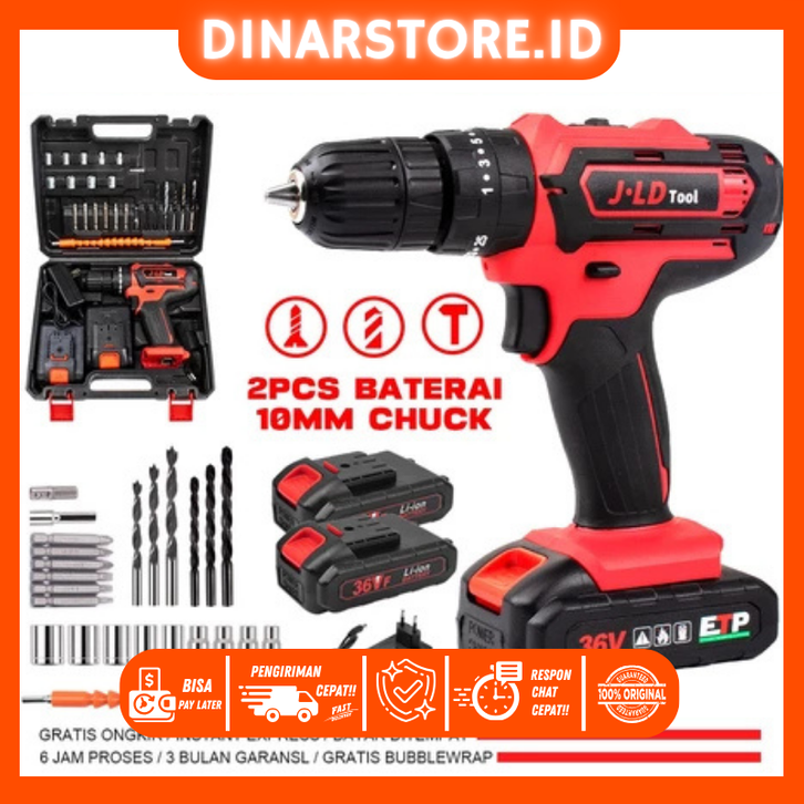36vf Mesin bor 2baterai cas JLD 10mm bor listrik murah bor tangan baterai besi tembok Beton kayu