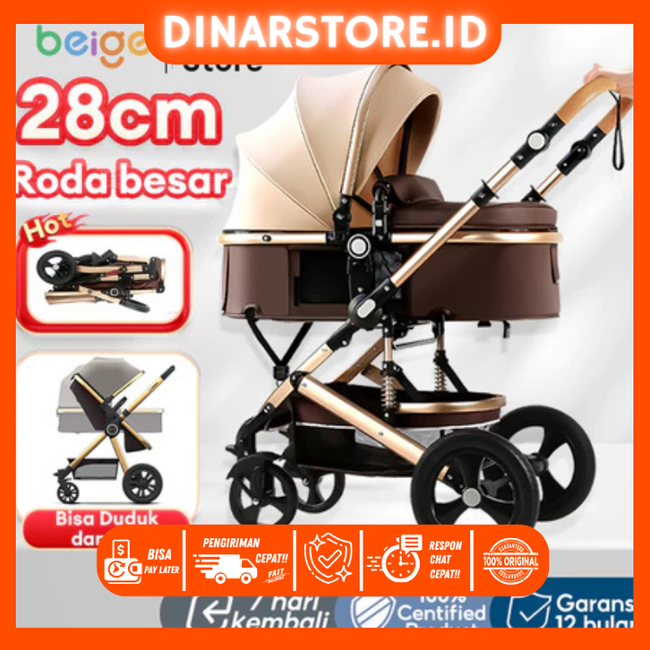 BEIGE Stroller Bayi 2 Arah Lipat Rebah Penuh & Duduk Ringan Usia 0-6 Tahun