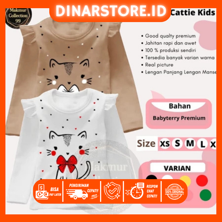 Atasan Kaos Anak Perempuan 1 14 Tahun Lengan Panjang Model Kerutan Atasan Cattie Kids Matt Babyterry