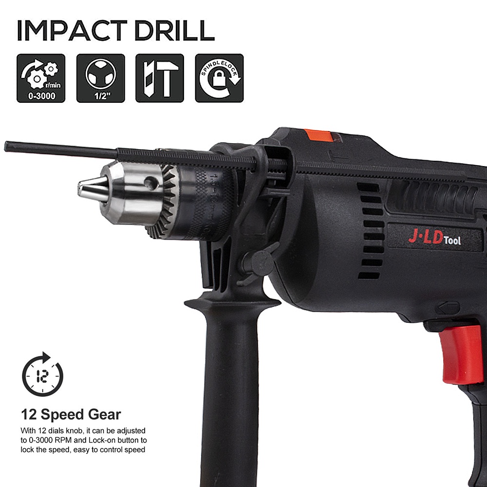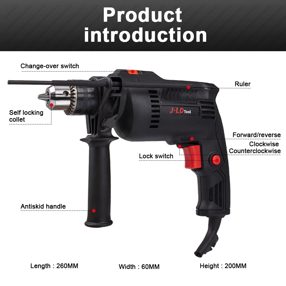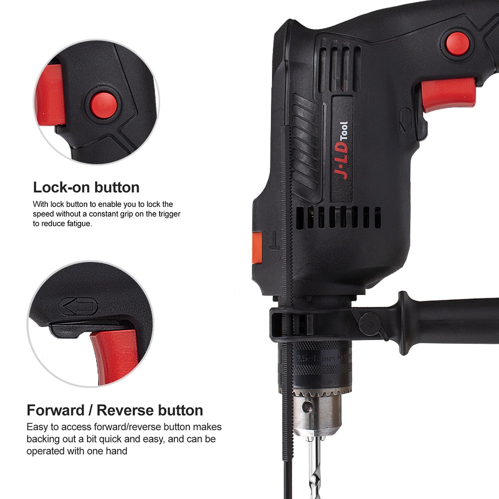 JLD 13mm bor tangan listrik 580W Mesin Bor beton impact bor murah boalk balik- impact drill- bor beton - Bor tembok bor