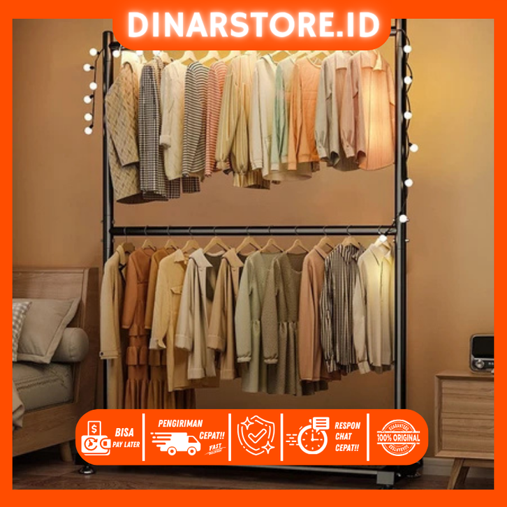 Rak Gantungan Baju Besi Stand hanger double Gawang Baju Jemuran Pakaian Portable Rak Baju Hanger