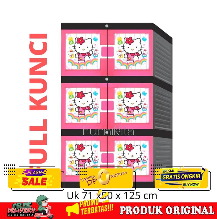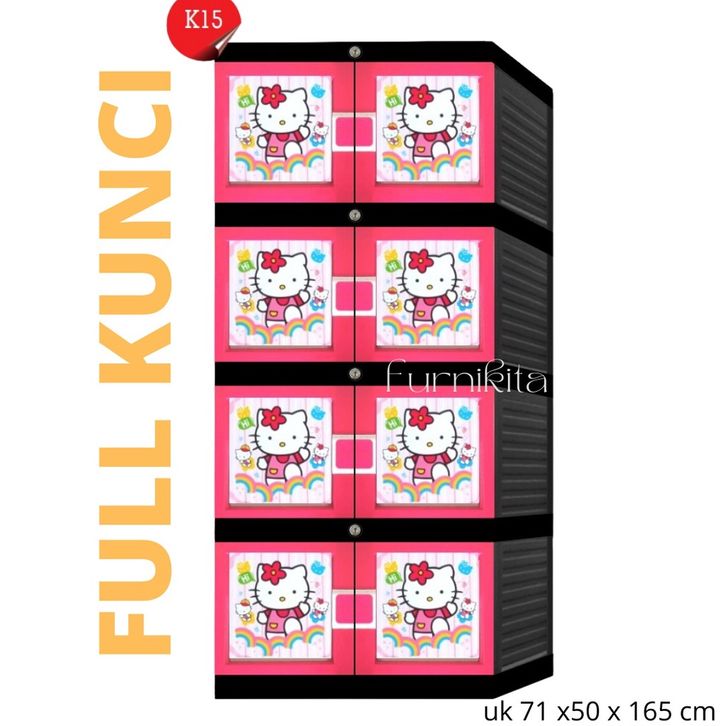 JUMBO - LEMARI PLASTIK SUSUN 4 FULL KUNCI KARAKTER SUSUN 3 KITTY SETRIKA
