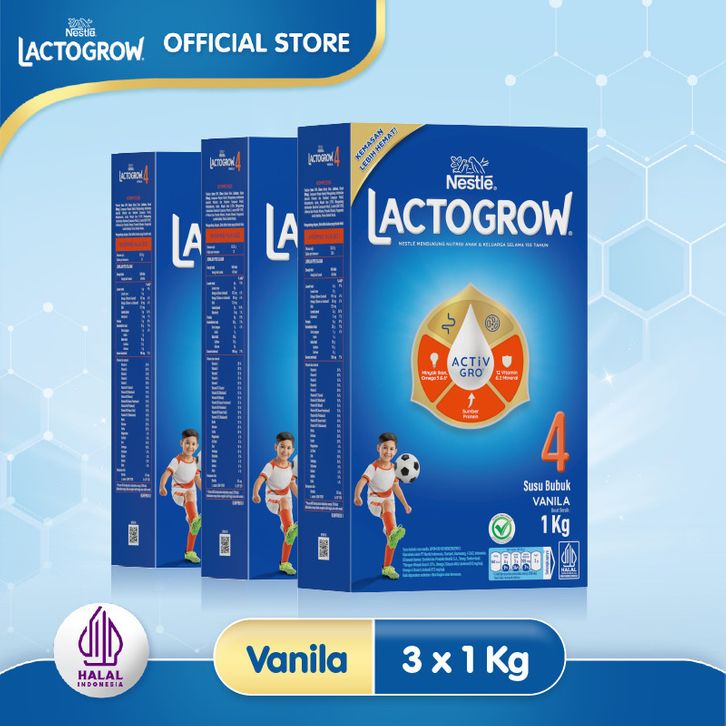 Nestle LACTOGROW PRO 3+ / LACTOGROW 4 dengan ACTiVGRO Susu Vanila Box - 1000g x 3 [3 tahun keatas]